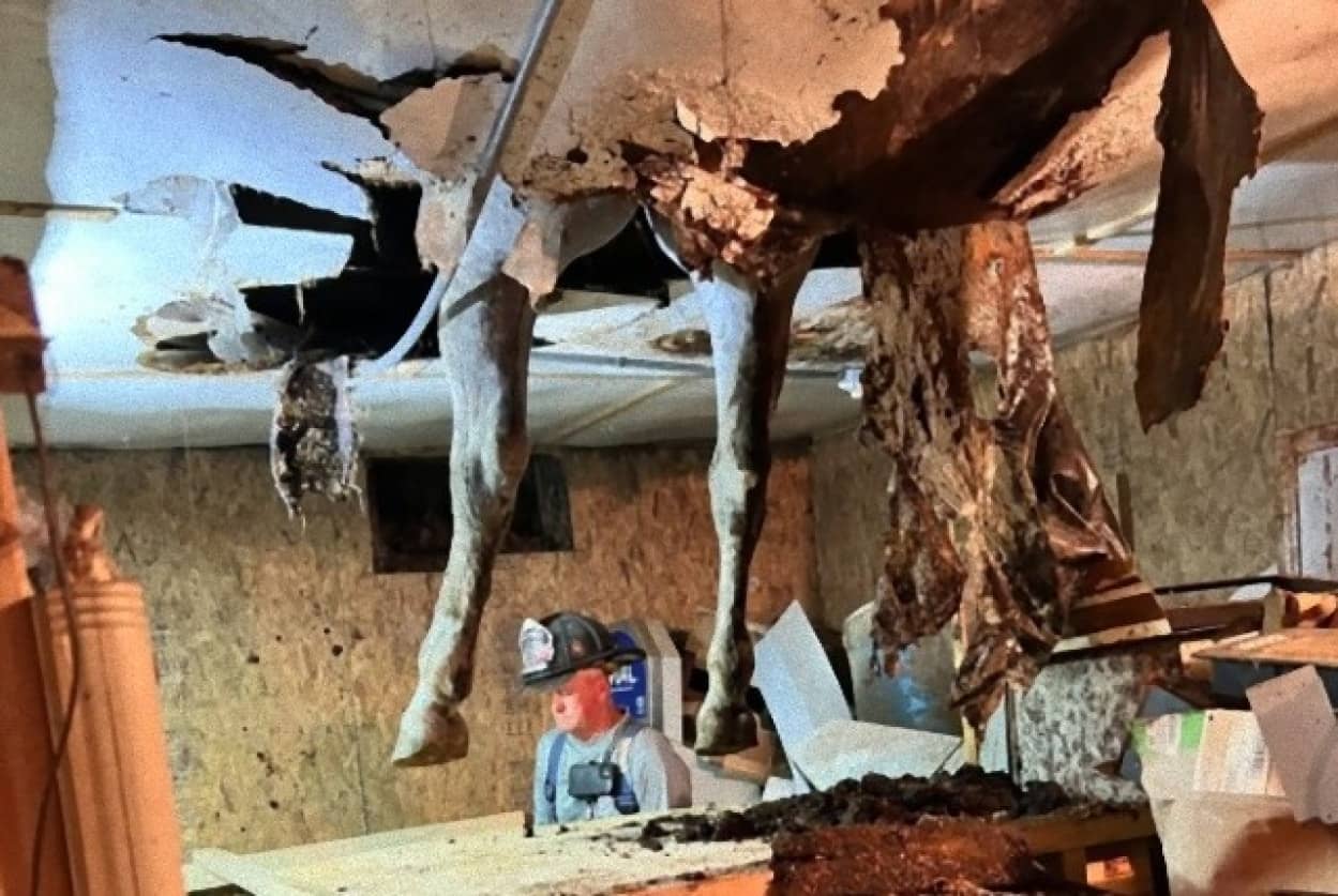 image credit:Facebook 今月3日、アメリカのマサチューセッツ州で、突然納屋の床が崩れ落ち、体重約544kgの馬の身体が挟まって動けなくなってしまうという事件が起きた。 早速レスキューチームが駆けつけたが、馬は下半身が梁(はり)に挟まれて身動きが取れなくなっており、『犬神家の一族』の逆スケキヨ状態になってしまった。 4時間に及ぶ悪戦苦闘の末、馬は無事に救出された。大した怪我もなかったようで、その後は元気に走り回っているという。 続きを読む Source: カラパイア 投稿ナビゲーション 5m泳げただけで表彰状…最近の小学生の体力低下がマジでヤバいと話題に 音楽の歴史を変えたアーティストや人物を挙げていけ