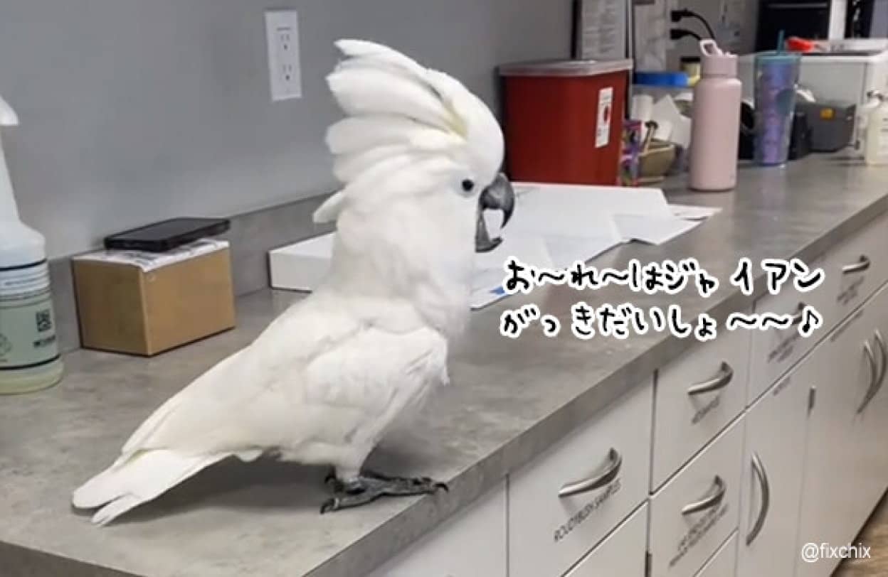 アメリカの動物病院の待合室にある台の上で、ひとりリサイタルを開催中だったのは、タイハクオウムだ。 このオウムは、台の上を歩き回りながら歌って踊り、診察を待っている人々やスタッフたちの前で熱演を繰り広げる。 病院の待合室は何かと緊張するものだが、彼は完全に場の空気を和ませてくれていて、こんなリサイタルなら毎日見に行きたいくらいだ。 続きを読む Source: カラパイア 投稿ナビゲーション 作家・暇空茜氏 安芸高田市長・石丸伸二氏の漫画趣味に激怒「オタクのふりをしてるだけだ」 東京都知事選、見事にめちゃくちゃwwwwwwww