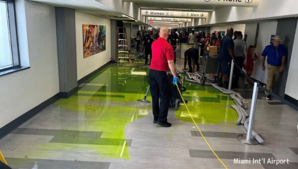 緑色というか蛍光グリーンの液体で床が水浸しになったのは、米フロリダ州のマイアミ国際空港のターミナルだ。 この液体は天井から漏れ出し、床を覆った。この日は7月4日でアメリカの独立記念日である。利用客らは毒々しい色をしたこの液体を警戒し、何が起きたのかとびっくりしたようだ。 続きを読む Source: カラパイア 投稿ナビゲーション 空襲で死んだ人の幽霊「うらめしや〜」日本人「ぎゃー」←これおかしくね? 「惨殺し死刑にします」巨人の選手の個人情報を載せた“殺害予告”で球団の業務を妨害か 大手生命保険会社元社員の27歳女を逮捕
