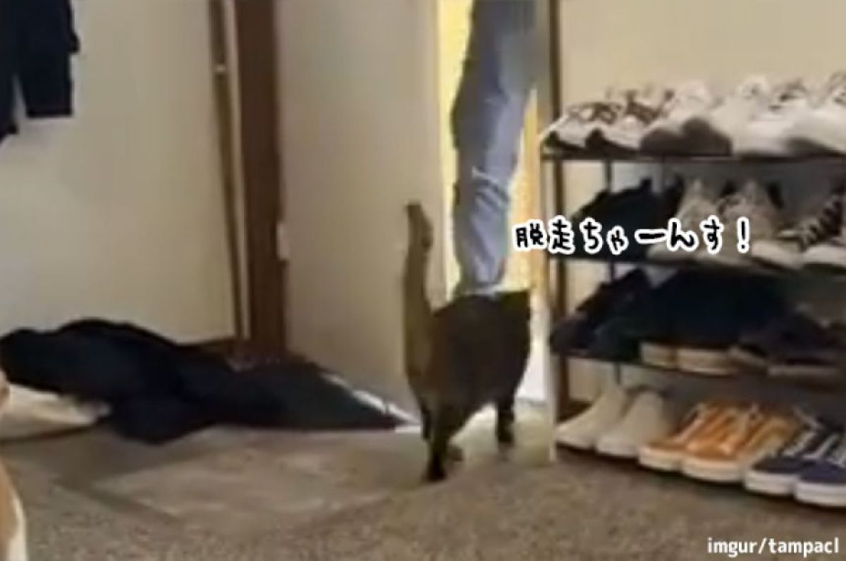 玄関のドアを開ける時に、猫が脱走をしようと待ち構えているのは猫飼いにはおなじみのアルアルだ。私も何度同じ目にあったことか。 もちろんすべての猫がそうというわけではないが、特にオス猫に多い気がする脱走チャンスの瞬間だが、この家の男性は、見事それを阻止することに成功したようだ。 買い物帰りで両手がふさがっていても、うまくいけばこの方法も使えるかもしれない。 続きを読む… ▼あわせて読みたい ・「本当に心配したんだから!」トルコの居候猫PJ、庭から一度脱走し、その後自力で帰還を果たす ・脱走した子猫にお説教をし、家に連れ帰る猫かあさん ・5つのドアを開け、目的の地にたどり着いた猫のミッションインポッシブル ・ケージ破りの異名を持つ、脱走の達猫のミッションインポッシブル ・おまえら全員逃がしてやる。特殊スキルを持つ保護施設の猫、仲間を脱走させた罪で独房に監禁される(アメリカ) この記事のカテゴリ:動物・鳥類 / 動画 Source: カラパイア 投稿ナビゲーション 母「10人目妊娠しました」→女性「産みたくても産めない人が居ます。もう少し配慮を」 かっこいいバンド名で打線組んだ