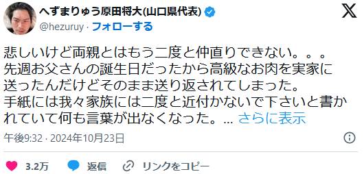 1: 名無しさん@おーぷん 24/10/25(金) 12:04:28 ID:O40u 今は頑張ってるのにかわいそう 全部世論のいうとおりしたらどんな国になるの? 続きを読む Source: 哲学ニュースnwk 投稿ナビゲーション 【相撲】西岩部屋所属力士・幹希の里、誹謗中傷するX垢調べたら「実母・祖母」だったと告白…分籍届提出 【画像あり】れいわ新選組のボランティアがヤバすぎて大炎上ww