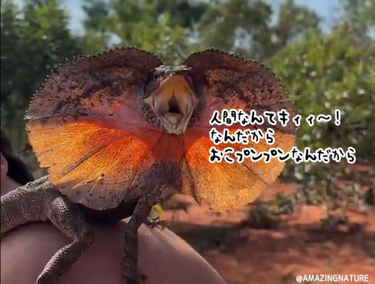 日本では昭和の時代にテレビCMなどに出演し、大人気だったエリマキトカゲだが、Z世代の人は知っているだろうか? 威嚇する時は、頭から首にあるエリマキのようなフリルをぶわっと広げ、自分よりも大きな相手に対しても立ち向かっていくその姿はかわいくもあり印象的だ。 オーストラリアで爬虫類らしき生き物の姿を見かけた男性が近づいていった。その生き物こそがエリマキトカゲ! 「なんだよ、こっちくんな!」とばかりにフリルを広げて男性を追いかけ、体をよじ登ってきたのだ。 続きを読む… ▼あわせて読みたい ・「ユーカリとかありますか?」スーパーにコアラがご来店、オーストラリアならではの珍客 ・オンリーオーストラリア。台所の電子レンジの裏でニシキヘビが愛し合っていた件(※蛇出演中) ・「うわっ、ごめんなさい、こっち来ないで!」エリマキトカゲにロックオンされた男性、全力で逃げる ・オンリーオーストラリア?ゴルフ場でプレイ中、大勢のカンガルーが観客に ・オンリーオーストラリア。裏庭でワラビーがレスリング。もつれ合って場外乱闘 この記事のカテゴリ:動画 / 昆虫・爬虫類・寄生虫 Source: カラパイア 投稿ナビゲーション 【撮り鉄】近隣への迷惑行為で記念列車「中止」へ 事前の警告もむなしく 守られない撮影マナー 真岡鐵道 62歳男「入院した母を元気にしたい…そうだ!点滴に免疫力の向上サプリを入れよう」→細菌混入で母死亡