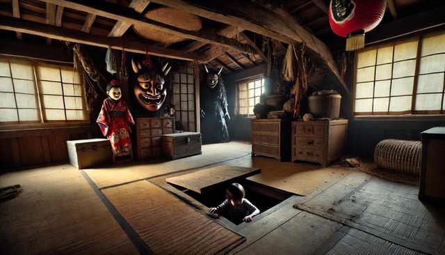 87: 本当にあった怖い名無し 2010/02/24(水) 00:53:20 ID:NAXdgYBi0 1/5 あれはもう20年くらい昔のことだったかな。 俺が小学生だった頃に田舎の婆ちゃん家に遊びに行った時の話だ。 婆ちゃん家は昔、蚕を飼っていたので古いがとても大きな家だった。 爺ちゃんは俺が生まれる前に亡くなったから、今では俺のお袋の弟 さん家族と婆ちゃんが暮らしている。婆ちゃん家は昔の家具とかが たくさんあって、俺ら孫たちはその大きな家を探検するのがとても 好きだった。 近くには流鏑馬?で有名な神社があり、そこは昔から天狗が現れる という伝説があった。お袋は子供の頃そこで不思議なものを何回も 見たらしい。 ちょうどお盆の時期だったと思う。真夏で暑かったのを覚えてる。 いつものように各家族の孫達が揃うとドタバタと家中を走り回り、 探検が始まる。俺が1番年上でお袋の妹の子供が1歳下。その次は 更にその下の妹の子供達2人で3~4歳下だった。お昼ごはんを皆で 食べた後、2時間くらいドタバタと屋内外で遊んだ。 1番下の孫2人は昼寝を始めたので、俺は1歳下の従兄妹を連れて2階 の物置(元・蚕部屋)へ行った。いつものように梁の上に登ったり、 昔の家具の上に登ったりして遊んでた。窓からは午後の日差しが差 し込み、ぼんやりと2階の中を照らしていた。 子供だった俺は家具の上から大きなダンボール箱が2個積んである 上に飛び降りてみようと思い、思い切ってジャンプした。ドスンと 箱の上に着地したが、すごい埃でゲホゲホ言いながら箱から降りた。 飛び降りた勢いで2個の箱は崩れ、中身が見えていた。何だろう? と思い中を見ると天狗のお面や団扇、お祭りの衣装?のようなもの が入っていた。 続きを読む Source: 哲学ニュースnwk 投稿ナビゲーション 地味にイラっとする「ラーメン屋の特徴」挙げろwwwww 有識者「IQが20違うと会話が成り立ちません」←これどういう意味なん?