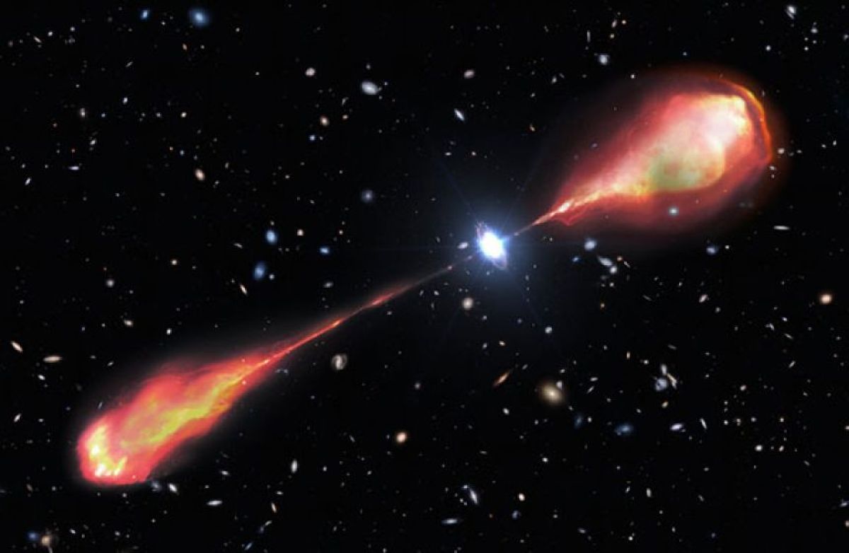 クエーサー「J1601+3102」のイメージ図 Image credit: NOIRLab/NSF/AURA/M. Garlick ビッグバンから12億年後の宇宙で、巨大なブラックホールジェットが発見された。その長さは天の川銀河(Milky Way)の2倍に及び、初期宇宙で発見されたものとしては過去最大の規模だ。 「J1601+3102」と呼ばれるクエーサー(超高輝度活動銀河核)は、まるで双頭の竜が両方向に火を吹くように、強力な電波ジェットを噴き出している。その長さは実に20万光年を超えるという。 初期宇宙で、こうした巨大なブラックホールジェット(電波ジェット)はどのように形成されたのか? そして、ブラックホールジェットは宇宙のどの時期に誕生し始めたのか? 今回の発見は、これらの謎を解明する重要な手がかりとなる。 続きを読む… ▼あわせて読みたい ・初期宇宙に孤立した超大質量ブラックホールを発見(ジェイムズ・ウェッブ宇宙望遠鏡) ・Shall we ダンス?衝突する銀河と踊る初期ブラックホールを観測 ・史上最大規模の超大質量ブラックホールの宇宙地図を公開 ・発見された宇宙最古の「死んだ」銀河が現代宇宙論に疑問を投げかける ・史上最も明るい天体の源は超大質量ブラックホール、1日に太陽1個を貪り食う この記事のカテゴリ:知る / 自然・廃墟・宇宙 Source: カラパイア 投稿ナビゲーション 【大阪】畑で“枯れ草を焼却中”体に火が燃え移ったか…60代男性が死亡 堺・美原区 路上生活に追い込まれる「妊婦」も…「難民申請者」取り巻く厳しい状況、支援団体はどこまで持ちこたえられるか