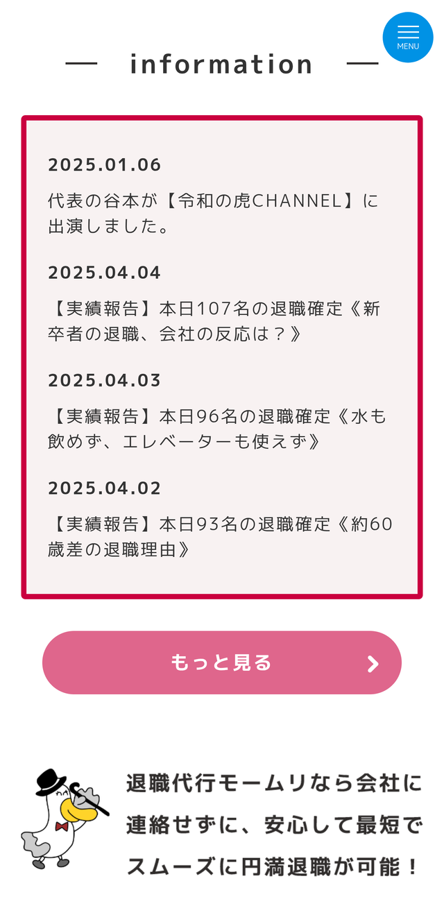 1: それでも動く名無し 2025/04/06(日) 10:25:30.53 ID:hNThFke60 やめすぎやろ😆 https://momuri.com/casestudy/ 続きを読む Source: 哲学ニュースnwk 投稿ナビゲーション 【大阪】ドラッグストア「コスモス」が謝罪、「無断駐車」警告は誤り 共用駐車場の認識不足が原因 KFCがフライドチキン味の歯磨き粉を限定販売!おいしく歯磨き?