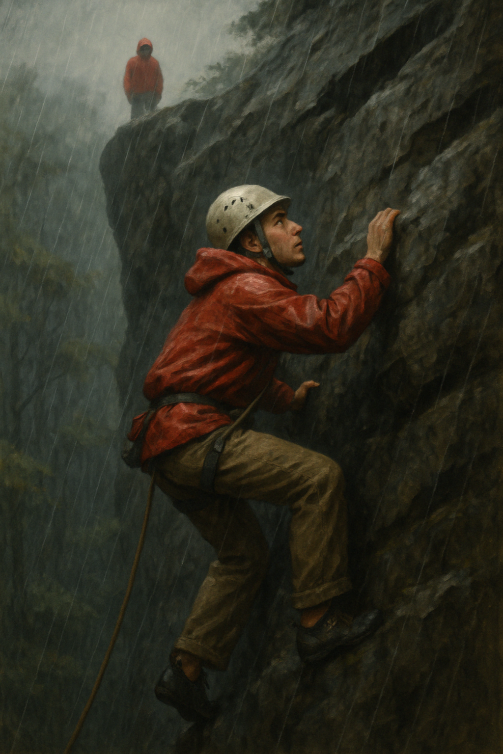 岩登りは基本的に二人でやるもので、一人が登り、もう一人がロープを操作して