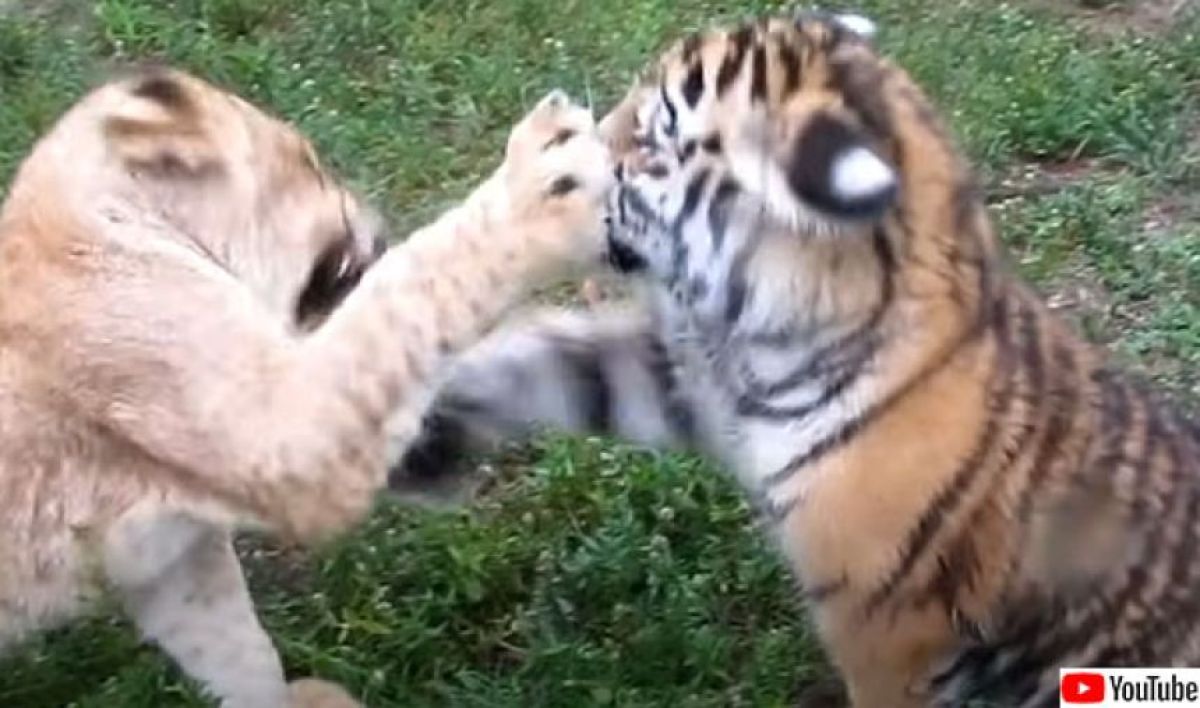 猛獣界の頂点に立つ、ライオンと虎がまさかの対戦を繰り広げていた?と思ったら「仲良くけんか」のじゃれあいほのぼのパターンだった。しかもちびっ子同士だ。 自然界において、ライオンと虎が対峙することは基本的にはない。生息地が違うためお互いに出会うことがないからだ。 だが野生動物保護施設の場合、同じ敷地内に一緒にいることもある。 アメリカ、フロリダ州の施設で共に育てられたライオンと虎の子は、まるできょうだいのように仲が良い。常に寄り添い、時にはこうやってじゃれあいながら一緒に遊ぶという。 続きを読む… ▼あわせて読みたい ・ハリウッド史上最も危険な撮影だった野生動物映画『ロアーズ』犠牲者は70人以上 ・ゲノム解読プロジェクトでネコ科の進化の秘密が明らかに ・ライオン、虎など大型ネコ科たちの鼻タッチにトライしてみた ・地球上で、最も強力な咬む力を持つ10の動物 ・言っても同じネコ科だろ?イエネコ、ライオンと対面するも威風堂々とかいう この記事のカテゴリ:知る Source: カラパイア 投稿ナビゲーション 【愕然】男「冷たい水をください」←実は強盗で、油断した瞬間襲われてしまう… 無職(64)逮捕 バブルが異常すぎただけ説 日本は本当に貧しくなったのか?