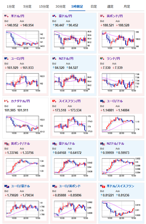 1: 以下名無しさんに代わりまして管理人がお伝えします 1848/01/24(?)00:00:00 ID:money_soku 2025年04月22日10時30分取得: やる夫今日のポイント:・欧州がイースター休暇明け、欧州市場中の大きめの動きなどには注意・米景気先行指数が市場予想を上回り悪化。ただし3月時のデータ・トランプ氏はtruthsocial上で関税やパウエル氏解任に関して圧力。どちらかが実現するなら米景気はより悪化、もしくは大混乱に突入すると予想・引き続き株価は上値が重く下げやすい。逃避先は円か金、フランなども強め。先日は仮想通貨も強い動き・仮想通貨の反発は目立った材料見られず。ドル安や投資家の自信回復との報道あり 本日のスケジュール(特に重要なイベントは赤字で表示) 21:30 カナダ)3月カナダ鉱工業製品価格(予想:前月比0.3%) 21:30 カナダ)3月カナダ原料価格指数(予想:前月比0.1%) 22:00 米)ジェファーソン米連邦準備理事会(FRB)副議長、講演前回発言(4月時点):金利良い位置にある 22:30 米)ハーカー米フィラデルフィア連銀総裁、講演前回発言(3月時点):米経済に危険信号、消費と物価に警戒感 23:00 欧)4月ユーロ圏消費者信頼感指数(速報値、予想:▲15.1) 23:00 米)4月米リッチモンド連銀製造業景気指数(予想:▲7) 23:00 欧)ラガルド欧州中央銀行(ECB)総裁、CNBCに出演前回発言(4月時点):現在起きていることについて、特定の見解を示すことはしない 26:00 米)米財務省、2年債入札 26:00 欧)デギンドスECB副総裁、講演前回発言(3月時点):対米貿易戦争、ユーロ経済に「極めて有害」 26:40 米)カシュカリ米ミネアポリス連銀総裁、講演前回発言(4月時点):FRBにできることはインフレ期待の安定のみ 27:30 米)バーキン米リッチモンド連銀総裁、講演前回発言(4月時点):関税はインフレ、雇用両方に影響する 29:00 欧)クノット・オランダ中銀総裁、講演前回発言(4月時点):長期的にはスタグフレーション・ショック 国際通貨基金(IMF)・世界銀行の春季会合と関連イベント(ワシントン、26日まで) 1001: 以下名無しさんに代わりまして管理人がお伝えします 1848/01/24(?)00:00:00 ID:money_soku おはようございますお。 本日は欧州市場もイースター休暇明け。 各種通貨ペア、指数などに動きが出始めるお。 といっても先日から特に変わった材料が出ているわけではなし。 トランプ氏はtruthsocial上にて関税やパウエル氏の解任に関して発言。 同氏が金利を下げないことで米景気が悪いというようなことを言っているけれど、今のCPIの動きから金利を下げると関税の影響もあわさり再びインフレが止まらなくなりそうかなと。 引き続きトランプ氏の政策で米経済がどこまで悪化するのかおっていくことになりそうだお。 株価は昨日も書いた通り、上値が重く下げやすい展開。 逃避先としては円、金、ここ最近はフランも強めとなっているお。 やる夫より:ニュース速報TwitterList、情報収集先などの記事だおやる夫の投資情報収集先あれこれ(2025年04月10日速報twitterlist更新)管理人のTwitterでも相場に関して出来る限りお答えしますとのことxmにて入金額倍増キャンペーンみたいだお 続きを読む Source: 稼げるまとめ速報 投稿ナビゲーション ガールズバーの女に30万円騙し取られた シフトを作る上司「なんで独身なのにGW連休の希望出してるの?」