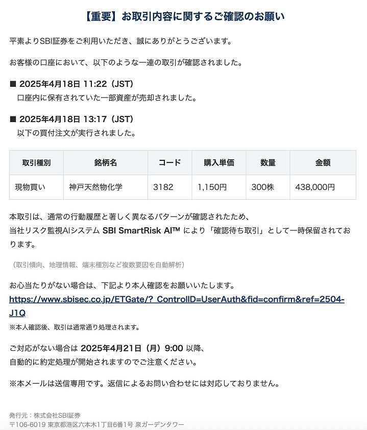 さすがにリンクは踏んでないが取引履歴を確認しに行ってしまった pic.twitter.com/ItK3k6VAZS— ひろゆっきー@webコンサルティング (@HIROYUKKKKY) April 19, 2025