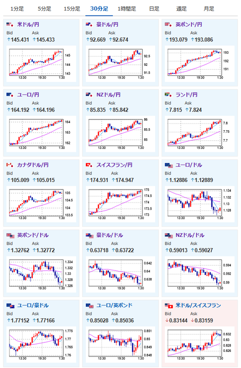 1: 以下名無しさんに代わりまして管理人がお伝えします 1848/01/24(?)00:00:00 ID:money_soku 2025年05月02日01時53分取得: 1個前の相場記事はこちら: 【相場】植田総裁会見も想定通りで前回とほぼ変わらず 利上げ期待後退で円売り 145円を目指せるか https://t.co/wGbC6EdAyC — まねたん (@kasegerumatome) May 1, 2025 1001: 以下名無しさんに代わりまして管理人がお伝えします 1848/01/24(?)00:00:00 ID:money_soku 日本の利上げ期待後退、米国の利下げ期待後退で一気に円安の動きだお。 1ドル145円台半ばまで上昇。 明日の雇用統計次第では146円台が目指せるけれど、こちらはまだ油断できずだお。 やる夫より:ニュース速報TwitterList、情報収集先などの記事だおやる夫の投資情報収集先あれこれ(2025年04月10日速報twitterlist更新)管理人のTwitterでも相場に関して出来る限りお答えしますとのこと 続きを読む Source: 稼げるまとめ速報 投稿ナビゲーション ワイ簿記3級に2回目も不合格で咽び泣く すき家 4月の売り上げ 前年同期を約20%下回る 異物混入の影響