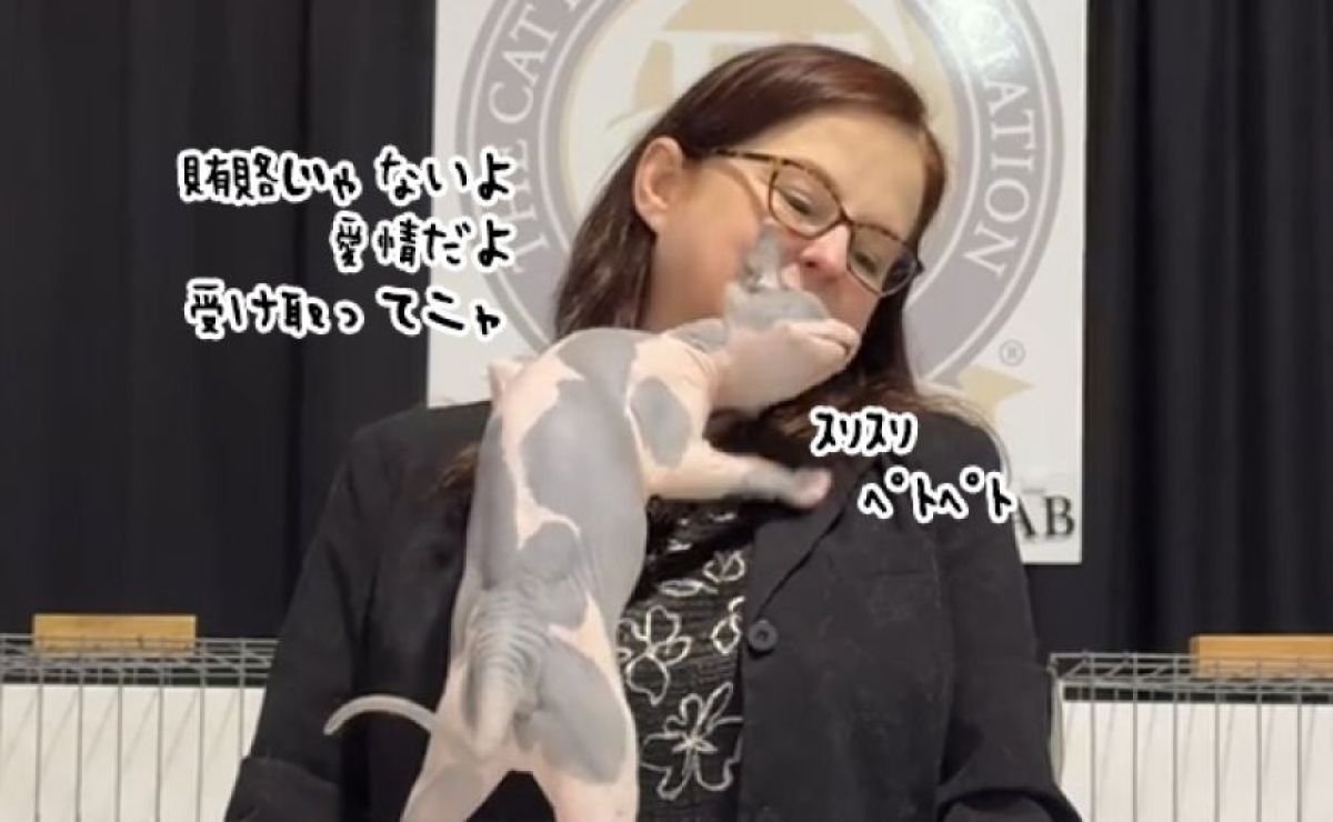 Photo by:TikTok@catsssslin キャットショーに出場したスフィンクス猫は、自分の出番になり台の上に乗った。すると二本足で立ち上がり、背後にいた審査員の女性にスリスリが止まらない。 顔をクネクネと押しつけながら、キスの連打で猛烈アピールだ。 愛情で審査員を買収しようとしたのかどうかはわからないが、その仕草が可愛すぎると話題になっていた。 続きを読む… ▼あわせて読みたい ・サイズも種族も関係ない!身体は大きく気の小さいグレートデンと、毛のない勝気なスフィンクスは親友同士 ・庭チーターとスフィンクスキャット、春のお庭でドキドキのファーストエンカウント ・猫氏「おうちに帰る?じゃあヨイショッ!」と、自分からバックパックに入るスフィンクス・キャット ・猫の尻尾の付け根の部分を触ると皮膚はどのような動きをするのか?ほぼ無毛の猫、スフィンクスで実験してみた ・その名もダークロード!お座りが上手すぎるスフィンクス猫が人気沸騰中 この記事のカテゴリ:動物・鳥類 / 動画 Source: カラパイア 投稿ナビゲーション タイ、ビル崩落から1カ月。68人死亡26人行方不明 崩落の原因究明と中国の責任追及を本格化 【私立最強】慶應義塾大学(慶応義塾大学)について知っていること【先生を名乗れるのは福沢諭吉(福澤諭吉)だけ】