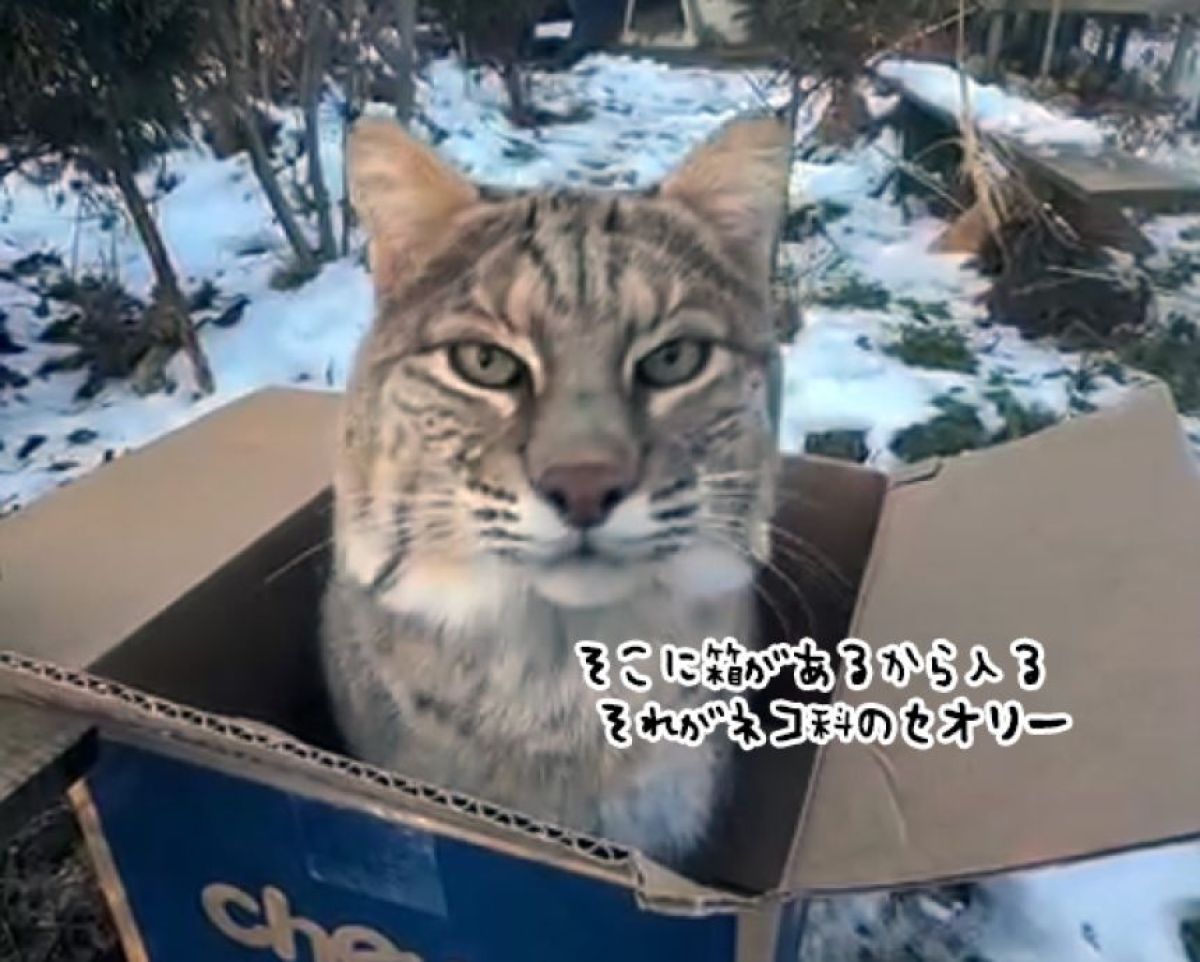 Rustic Acres Wildcat Rescue/Instagram そこに箱があれば飛び込む!これは飼い猫にとってのセオリーみたいなものだが、大型ネコ科も同様だ。大きくたって猫は猫。箱はやっぱり大好きなのだ。 アメリカの野生動物保護施設で暮らすボブキャット(オオヤマネコ)のマンカも例外ではない。 ダンボール箱を見るやいなや、吸い込まれるように入っていった。しかもゴロゴロと喉を鳴らし、ちょっと大きなイエネコみたいな感じだ。 続きを読む… ▼あわせて読みたい ・同じネコ科なら助けなきゃ。孤児のオオヤマネコのお世話をかって出た聖母イエネコ ・ネコ科はヒモの魅力に抗えない。車からロープを出したらライオンが釣れた件 ・社会的距離のために円形のマークを描いたところ、猫が転送されてきた件(フィリピン) ・だってネコ科だもの。ホワイトタイガー、破壊後のダンボールですらこの始末 ・ボブキャットパイセンが3匹の我が子を連れて玄関先にやってきただとぅ?カナダ、カルガリー地区ではボブキャットが出没中 この記事のカテゴリ:動物・鳥類 / 動画 Source: カラパイア 投稿ナビゲーション 炭酸飲料やスナックなどを食べると死ぬ 「どの世代でも知ってる歌」って意外と少ないよな…