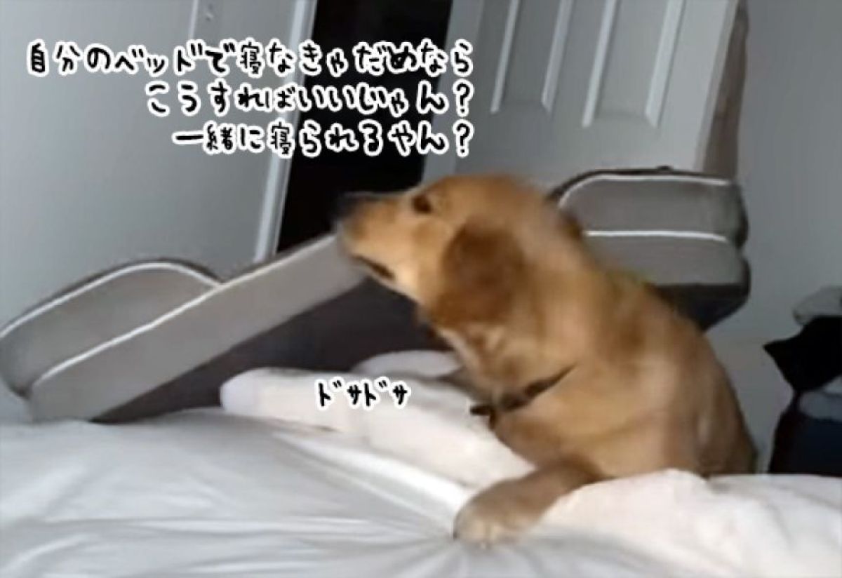 Youtube アメリカで暮らすサラ・プレスリーさんの愛犬、ゴールデン・レトリバーの「ボー」は、小さなころから「寝なさい」と言われると、自分のベッドに行っておとなしく眠る習慣が身についていた。 ボーには、ふかふかで寝心地のいいベッドが用意されていた。自分のベッドは気に入っていたけれど、大好きな飼い主と一緒に眠りたかった。 そこでボーは考えた。どうすればその両方をかなえられるか。そしてついにひらめいた!そして力づくで実行に移したのだ。 この方法なら、「自分のベッドで寝る」というルールは守りつつ飼い主と一緒に寝ることができるのだ。 続きを読む… ▼あわせて読みたい ・最高のお昼寝を追求するために、ベッドをずるずる運ぶ犬 ・こうてもろた!新しいベッドを買ってもらった犬、うれしくて自発的に運搬のお手伝い ・巣から落ちた雀のヒナを自分のベッドに持ち運び、守ろうとした犬 ・大切なものは全部ベッドにしまい込むい犬。そのお宝を大公開!一番のお宝は? ・大型犬が申し訳なさそうに小さなベッドに入ろうとする、その理由はアルアルすぎた(猫) この記事のカテゴリ:動物・鳥類 / 動画 Source: カラパイア 投稿ナビゲーション 中国人3人、国の天然記念物オカヤドカリ数千匹160キロをスーツケースに詰め込む 無許可持ち出し 【懐かしさ爆発】記憶の奥に眠る画像を解放せよ!