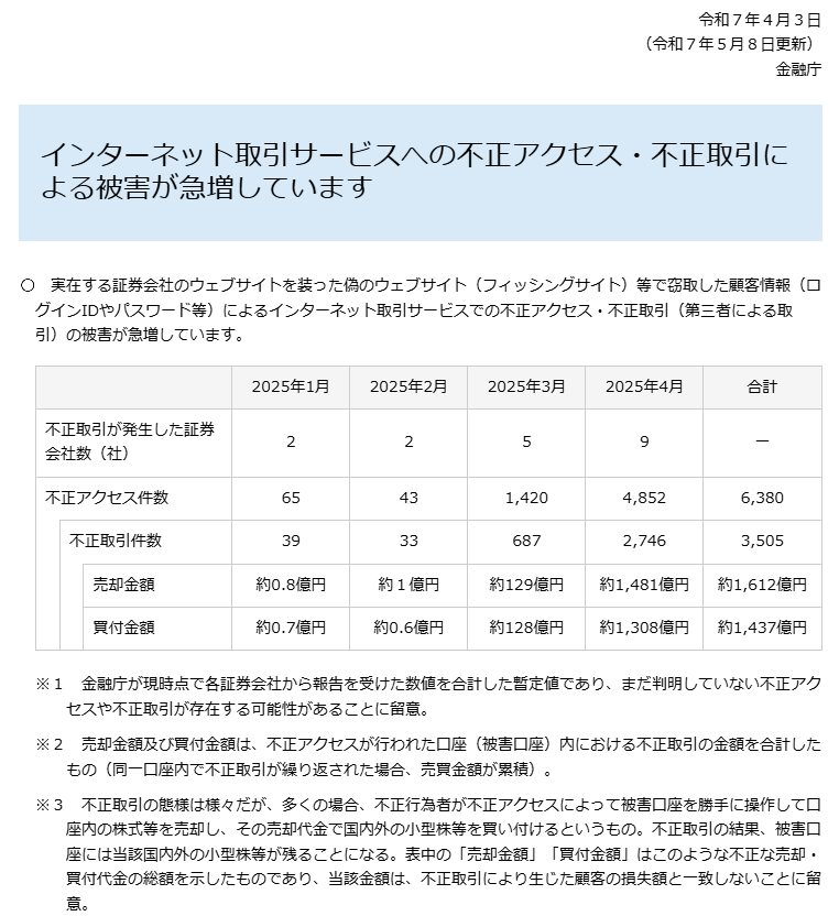 証券口座乗っ取り(25年1-4月)…1612億円※