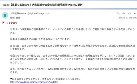 クソ怪しいメールが来てたなど。 ワイ、大和証券に口座なんかないんやが(白目 pic.twitter.com/zJd44ChwqH — freeze deer(出走中) (@freezedeer) May 7, 2025 自称SBI証券からフィッシング詐欺・不正アクセスによる損害の補償をするから今すぐこのURLをクリックして補償申請をしてほしい期限は今月末みたいなフィッシング詐欺メールが来た。 — はばキツ (@foxnumber6) May 6, 2025 金が入ってない口座なのにテスタニキのとこだけ手厚いな — うしっクマ (@bullbear48) May 7, 2025 テスタさんの口座乗っ取りはどう考えても身内の犯行やろな他と性質が違い過ぎる — 岐阜っ子サリー (@kozukozu331) May 7, 2025 有名人のテスタさんが乗っ取り被害を公表 ↓証券界がすぐに補償に舵を切る これ、タイミングがたまたま被ったんか? — とんかつ@インデックス投資 (@tonkatsu_index) May 3, 2025 不正注文での損害は全額損失補填と不正注文ではないとか顧客の過失の立証責任が証券側にある。 これは譲れない線やな。でないとそのうち被害者になるのは目に見えてる。 — ローリスク投資、君の名はユウジ (@apegogo3) May 7, 2025 証券会社が落ち度のないお客様の口座乗っ取りで損害金を補填するのは「異例」ではなくいままでそうしてこなかったこと自体がおかしいんですよ 食品チェーンは提供食材にネズミが入ったと与太話流されても全店確認清掃のためにお店閉めるんですよ 今回は手口情報も満足に当局に出さず後手に回ったのに — 負け戦も最後まで楽しく 火鍋ちゃん(幕府方目付衆) (@hinabe_ch) May 2, 2025 飲食店なら味噌汁にネズミが入っていただけで営業停止なのに、証券会社はシステムの脆弱性や内部統制の不備で何億円もの被害が出ていても平気で営業を続けるという。 — Tekito (@sokosokosokosan) May 1, 2025 不正取引の被害額、ページが更新されてすごい増えてた pic.twitter.com/XgUOUbFkQx — ありゃりゃ (@aryarya) May 8, 2025 https://www.fsa.go.jp/※4ヶ月間の不正アクセスによる証券口座の乗っ取り被害 ・3505件 ・勝手に売られた 約1612億円・勝手に買われた 約1437億円 ・計約3049億円 口座乗っ取り総額3000億円って、もうこれユーザーのせいなんて言えへんやろ — ゆな先生 (@JapanTank) May 8, 2025 金額のイメージ 安愚楽牧場(2011年)…4207億円豊田商事(1985年)…2000億円天下一家の会(1970年代)…1896億円証券口座乗っ取り(25年1-4月)…1612億円※SNS型投資詐欺(2024年通年)…1268億円円天事件(2007年)…1000億円投資ジャーナル事件(1985年)…580億円 ※買付額のため被害額と同等ではない — はまなか (@hamanaka334) May 8, 2025 証券口座にたくさん入ってそうな皆さんがビビってるのを、低みの見物 — スパゲッティモンスター (@spaghet76868452) May 3, 2025 今年1月は1億もなかった不正売買が直近4月で1500億超えてきてるとか明らかに国家ないし大規模組織で日本が攻撃くらってるやんけ政治家どもちゃんと直視しろ — ぷっちょ (@puchogen) May 8, 2025 毎日見てて、んひどいなと思ってたけど尋常ではないな やっぱり白旗あげて市場一部制限するべきなのでは 市場は開いているべきだともちろん思うし、止めたら信用は失うけど、それを言うならもうとっくに失ってるだろ — 確認用 (@news9111) May 8, 2025 口座乗っ取り被害の男女比が知りたい 女性が極端に少なければ、原因としてエロサイトアクセスを疑いたい — ニイやん (@btcscalper225) May 7, 2025 この増え方ははさすがにユーザー側だけのせいじゃなくねーか…。JPXも怪しい株は止めりゃいいのに — まいる (@flagcrashers) May 8, 2025 不正アクセス止めるには全口座ロックくらいしないと止まらないと思うんだけど、解決策見つからないまま放置してたら1兆以上被害取引されて犯人グループに数千億取られちゃうぞ — たかぴー (@takahirokabuu) May 8, 2025 粉飾上場してくる会社にハメこまれたり犯罪集団に口座乗っ取られて泣き寝入りになったりよく考えたら日本株ってほんとろくでもないなあ — まいる (@flagcrashers) May 2, 2025 Source: 市況かぶ全力2階建 投稿ナビゲーション 日本人「ブルーカラーは底辺w工場w運送www」 トランプ氏「教皇に扮した私の画像は、誰かが作ってネットに投稿した。昨夜初めて見た。」