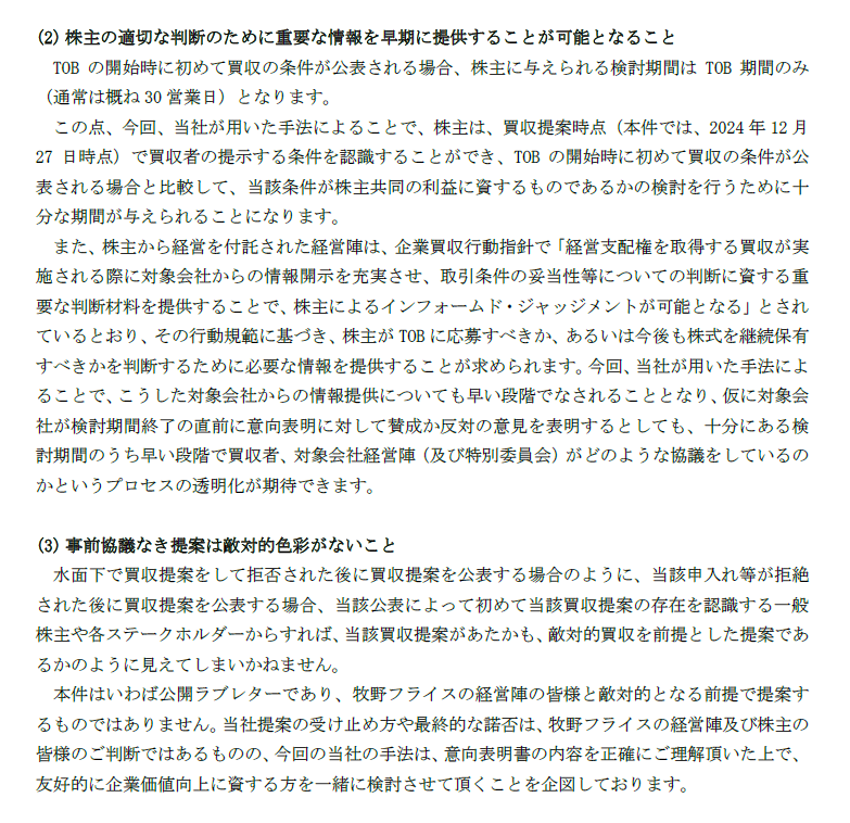 「本件はいわば公開ラブレターであり、牧野フライスの経営陣の皆様と敵対的となる前提で提案するものではありません