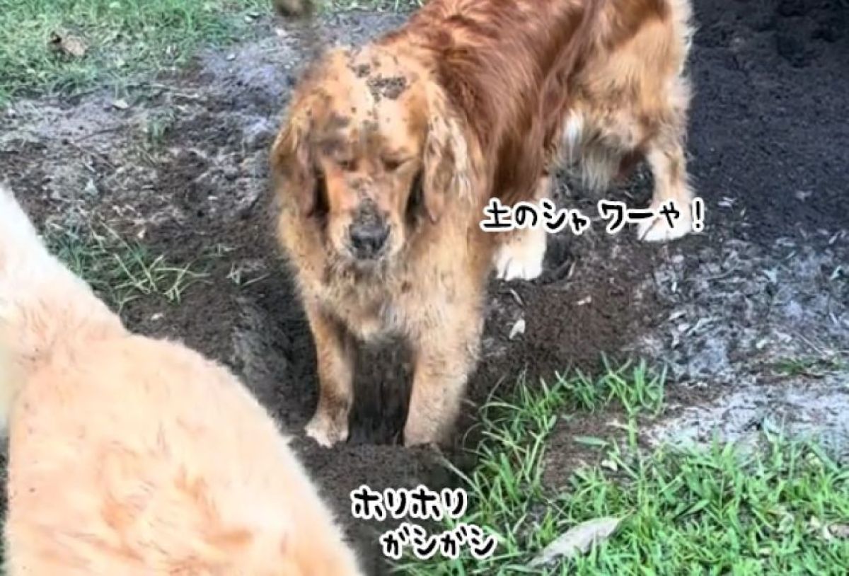 Tiktok@gelsa 3歳のゴールデンレトリバーの姉妹、アリスとティファニーは地面の土を掘り起こす遊びが大好きだ。 ティファニーが猛烈な勢いで穴を掘っている後ろには、ちょうど顔面に土がかかる位置でアリスが待機している。 どんなに土が飛んで来ようとアリスはその場を動かない。土が顔にかかるのも含めて、この遊びを楽しんでいるようだ。 続きを読む… ▼あわせて読みたい ・口にくわえたテニスボールの数、世界ギネス記録を持つゴールデンレトリバー ・尊すぎる。嵐の中、カエルを守るために家に入ろうとしないゴールデンレトリバー ・職務はみんなを癒し笑顔にすること。3代目の犬市長に当選したゴールデンレトリバー ・絶対起きられるやつ。6匹のゴールデンレトリバーによる奇襲モーニングコール ・ココ、ニオウ。ハスキー犬が穴を掘り続け危険なガス漏れを発見し、近隣住民を救う この記事のカテゴリ:動物・鳥類 / 動画 Source: カラパイア 投稿ナビゲーション 【芸能】父は坂本龍一、母は矢野顕子 坂本美雨の『タトゥー』に好感の声続々 「こんな素敵ならいれてみたい」「良い刻み方!」 【福岡】「うるさいから捕まえようと」パトカーから逃走中の2人乗りバイクに車で追突させた男(21)を逮捕