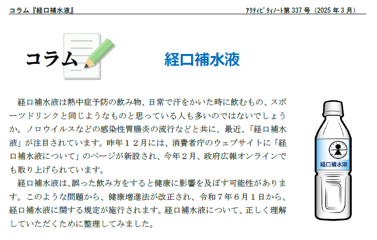 化学製品PL相談センター 「健康増進法が改正され、令和7年6月1日から、経口補水液に関する規定が施行されます」