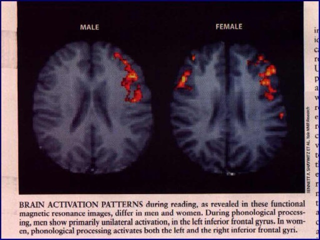 1: サイベリアン(ジパング) [CN] 2025/05/15(木) 06:27:38.06 ID:XspNw1hp0● BE:659060378-BRZ(11000) 言葉を理解する際に 男性は左脳のみを使っているのに対し、 多くの女性が左右の脳を使っていることが MRI(磁気共鳴映像装置)を使った実験で確認されています。 脳疾患にかかった場合、女性の方が失語症になりにくく、 治りやすいという医学的な事実があるが、 これも男女の言語機能の性差によるものと考えられています。 言語野 女 右脳左脳 男 左脳のみ 画像 https://www.balancedgrowth.co.jp/column/diversity-innovation.php 続きを読む Source: 哲学ニュースnwk 投稿ナビゲーション カピバラが脱走後40日以上経過、中国の動物園が懸賞付き指名手配で住民に協力を呼びかけ 【洒落怖】洒落にならない怖い話『焚書の代償』