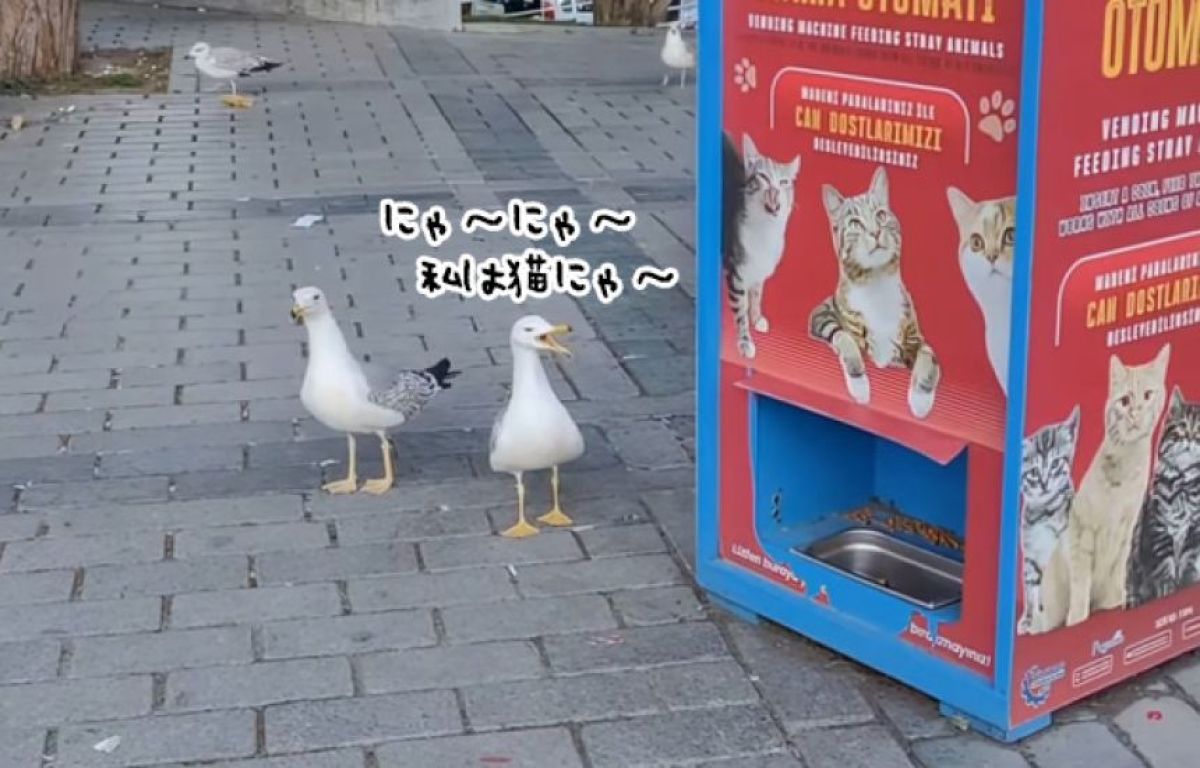 Instagram@gullsco ご存じの通りトルコは人間と動物の共存社会を目指している。そのため、野良猫や野良犬という概念はなく、飼い主がいなくても、地域動物として共同で自治体や住民たちがお世話をしている。 そうした事情から、地域動物用の餌の自動販売機が数多く設置されているのだが、その恩恵にあやかろうとしたカモメはある特技をもっている。 猫の鳴き声をまねて泣くことができるのだ。ニャ~ニャ~と鳴いて、そこに猫がいるように見せかけて、餌をもらおうとするのだ。 続きを読む… ▼あわせて読みたい ・カモメにサンドイッチを奪われるお客さんが続出し困った店主が「カモメ保険」の導入を検討 ・「よぉ、今日は何してる?」窓の向こうにやって来るカモメと家族同様の付き合いをする保護猫 ・ホラー映画かな?カモメ集団、車内のポテトを奪おうと執拗にガラス越しから攻撃 ・ワシの着ぐるみを着て、カモメを追い払ってくれる人を募集するイギリスの動物園 ・空のペットボトルを入れると地域動物の餌が出てくるマシーン。町ぐるみで動物との共生目指す(トルコ) この記事のカテゴリ:動物・鳥類 / 動画 Source: カラパイア 投稿ナビゲーション まんこ「いやぁぁぁ!ジブリショップの前にオタクポルノが掲示されてるぅぅぅ!」 【闇深】人気Vtuber葉山舞鈴「ゲーム攻略の指示やめろ。初見の楽しみを奪うな」 指示厨に激怒