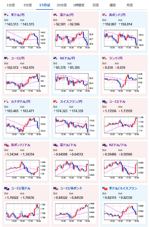1: 以下名無しさんに代わりまして管理人がお伝えします 1848/01/24(?)00:00:00 ID:money_soku 2025年05月21日19時41分取得: 昼の相場記事はこちら:中東懸念、米中関係悪化懸念は特に改善しておらず材料通りな動き継続 【相場】ドル円144円割れ 中東情勢悪化影響、米中関係悪化によりリスク回避の動き https://t.co/9BwNe7KDLG — まねたん (@kasegerumatome) May 21, 2025 これからのスケジュールは朝の相場記事にて:【為替相場】イスラエルがイランの核施設を攻撃検討とCNN報じる 円買い、金買い、ビットコインが上昇中 1001: 以下名無しさんに代わりまして管理人がお伝えします 1848/01/24(?)00:00:00 ID:money_soku 相場記事に書いた材料通りの動きで進行中だお。 欧州市場入りにて一旦円買いが一服していたものの、状況は一切変化しておらず再び円買いの動き。 市場の切り替わり時間は値動きが一時的に反転することがあるので、そのタイミング毎にポジションを調整していくのも一つの手だお。 やる夫より:ニュース速報TwitterList、情報収集先などの記事だおやる夫の投資情報収集先あれこれ(2025年04月10日速報twitterlist更新)管理人のTwitterでも相場に関して出来る限りお答えしますとのことxmにて$10500までボーナス、トレコン開催中とのこと 続きを読む Source: 稼げるまとめ速報 投稿ナビゲーション 請求書のメール送付を全自動でする方法教えてくれ 吉野家「2030年までにラーメン店を500店舗作る!牛丼よりラーメンの方が儲かるんや」