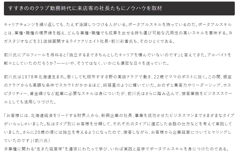 LIFE CREATE社のHPで代表の経歴見たけどすすきのの高級クラブのママだった件は一切書かれず、専業主婦から成り上がった女性社長というブランディングにされてる模様(´・_・`) pic.twitter.com/VkMZ7En3iU