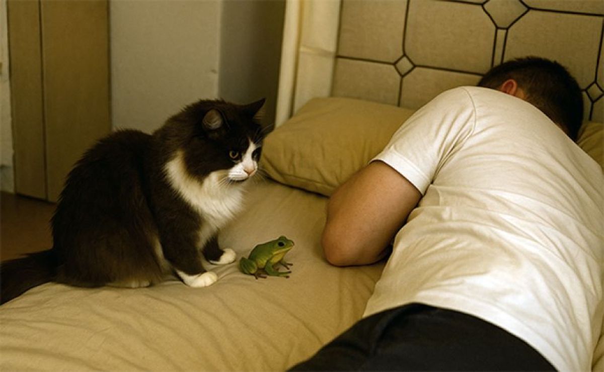 猫は飼い主の為、その狩猟能力を発揮して、小動物などの獲物を狩り、フレッシュな状態で届けてくれることがある。 この家の猫は夜中にカエルを捕まえたようだ。狩りもままならない飼い主の為、猫はそのカエルをベッドで眠る飼い主の枕元に置いて、飼い主が喜んでくれるのを楽しみに見守っていた。 だが、飼い主はせっかくの猫の厚意をこころよく思わなかったようだ。というかその贈り物に気が付くタイミングが悪かっただけなのかもしれないし、そうでもないのかもしれない。 続きを読む… ▼あわせて読みたい ・これは幸せな気分になれる。毎日飼い主に花束を運んでくる猫がいる暮らし ・猫はとんでもないものを生け捕りして飼い主にプレゼントしました(G出演中) ・お花の配達人は猫だった。庭の花を持ち運び飼い主にプレゼントするロマンチックな猫 ・ネズミを連れてきた猫。どうやら一緒に遊ぼうとしているようだ ・猫のおみやげは、時として飼い主に強烈なダメージを与える件 この記事のカテゴリ:動物・鳥類 / 動画 Source: カラパイア 投稿ナビゲーション 「おにぎりすら食べられない」相次ぐ郵便局員の突然死 「美人だね」「スタイルいいね」「ちゃん付」は全てアウト? 意外と知らないセクハラの境界線