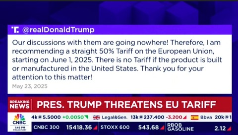 中国との関税が上手くいかなかったから今度はEUか。どうせすぐ撤回しそうだけどなぁ。 — ケイ (@kei_invest) May 23, 2025 相場操縦大統領、久々の出勤かよ — もっち (@motti1234) May 23, 2025 もうこれ交渉の進捗云々の観測報道無視してトランプSNS一発でこんなんなるんだからもうお手上げでしょ — もちベーコン (@qxqxqxaquas) May 23, 2025 https://sekai-kabuka.com/ もうEUも日本も一帯一路に入ろうぜ — 三味線 (@f10523) May 23, 2025 トラちゃんキャンセルしたの?関税キャンセル界隈? — 気絶 (@l3syk) May 26, 2025 https://truthsocial.com/@realDonaldTrump/ 対EU50%関税発動延期(6/1→7/10)の件、取り急ぎ「50%ではなさそうだ」という想起を呼び込んだ点はポジティブ。VDLがかなり奮闘した模様。なお関税の終着点については、一律10%(対中30%)残しが濃厚。ゴールはなんとなく見えるものの、過程は極めて不透明。時間稼ぎでリスクオンなら完全にお花畑相場。 — Yuto Haga ⚽️ (@Yuto_Headline) May 26, 2025 なんやこの茶番は… — スース (@perp_nc10) May 25, 2025 なにがしたいんだ — 確認用 (@news9111) May 25, 2025 土日無駄につらい思いをした皆さんトランプは手のひらを返しましたよ — 岐阜っ子サリー (@kozukozu331) May 25, 2025 自分の一言で、こんだけ市場が反応するんだから、そりゃ楽しいでしょうなあ — まに (@busokuten) May 26, 2025 ホントそうですね。 — にこそく (@nicosokufx) May 26, 2025 トランプさん手のひらクルクルしまくっててイライラする相場が荒れ放題や(৹˃ᗝ˂৹) — さるたろ (@super_sarutaro) May 25, 2025 なんかもう市場は繰り返されるトランプ仕草を「池乃めだか師匠の「今日はこんなもんにしといたろ」」みたいな鉄板芸とみなし始めた感あるなw 狼少年w — 僻地課長 (@bubu0404) May 26, 2025 ※特級相場操縦士のトランプ大統領、対中関税で「今回はこれぐらいにしといたるわ」と池乃めだかムーブをキメる(2025/05/12) 日本は、実は報復関税したほうが良かったんじゃないか? — ○イジー (@daisycutter7) May 25, 2025 【トランプ相場の必勝法】下げたら買う、上げたら売る ※有料級情報※すぐ消す — 株ゴリラ (@gorillataxjp) May 25, 2025 Source: 市況かぶ全力2階建 投稿ナビゲーション 警察「はいアルコール呼気検査ね」男(41)「ン拒否するゥ」←逮捕 ワイ人事「事務が残1か…女性が活躍中です!と」→50代男性殺到