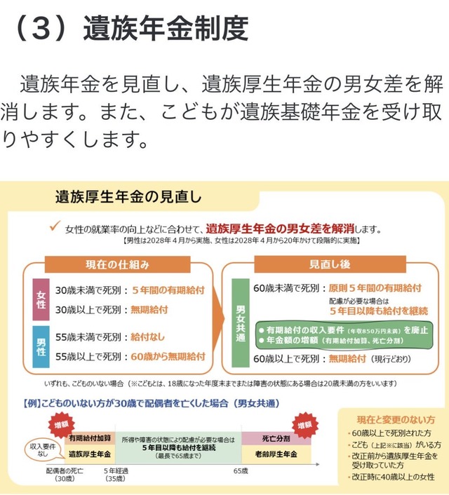 1: それでも動く名無し 2025/05/30(金) 17:02:05.37 ID:7+huRnNnd 「2336万円もらえるはずが365万円に」政府の年金制度改革法案で「遺族年金」の給付水準が大幅カット 「保険料を減らす」「支給期間を有期にする」など民間保険会社ならありえない変更 https://www.moneypost.jp/1275732/ ・60歳未満で夫が死亡した場合は原則5年間給付 ・18歳未満の子どもがいる場合は給付 ・5年間の有期給付加算と65歳以降の死後分割加算もあるが加算額は不明 続きを読む Source: 哲学ニュースnwk 投稿ナビゲーション 【福岡】「泳いで渡る」と言い残し20代男性が行方不明に 福岡市の能古島周辺 海保や消防が捜索し救助も死亡確認される ☎👈😫営業なのに「電話が怖い…」若者に広がる「電話恐怖症」
