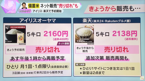 古米を1年前の新米ぐらいの価格で売るのが目玉商品になるって、よく考えるとどんな悲惨な状況やねん…(´・ω・`) — ざら速(ザラ場速報) @ときどき仮想通貨 (@ZARASOKU) May 29, 2025 https://www.youtube.com/ 進次郎の備蓄米放出販売はマジでめちゃくちゃ早かったな JAに忖度しない人間が本気出せば自民党でもできるんだよなー — さふぁいあ (@sapphirekun) May 29, 2025 個人的には備蓄米全種類試してみたいな pic.twitter.com/vvyPQU2ywr — なめるなよ (@PlayerNatural9) May 29, 2025 https://www.youtube.com/ 小泉進次郎の判断が正しかったか否かは米の味だけが決める。 まるで美味しんぼだ — エターナル総書記 (@kelog21) May 29, 2025 「古米・古々米」という名称で、今まで古いお米はイメージを損してきたので、「熟成米・超熟成米」と言う前向きな名前にすれば、少しはイメージ良くなって高く売れるんじゃないかな — ひきこうもり (@Hikikomori_) May 29, 2025 古米=熟成米古古米=超熟成米古古古米=シン熟成米古古古古米=完熟米古古古古古米=不死米これで行こう! — 御発注(コジん投資家、御発注塾塾長) (@erroneousOrder) May 29, 2025 備蓄米を「小泉米」って何考えてんのTBSは異常すぎるわ pic.twitter.com/zZLQoXHif3 — ジャム (@jam9801) May 27, 2025 じゃあ有料になったビニール袋の事を小泉袋って呼べよ — AFROMANIA (@AFROMANIA2) May 28, 2025 小泉米よりナナヒカリの方がしっくりくるね — ながさか (@thari1044) May 28, 2025 備蓄米が出るとなったら店頭に並び出した アベノマスクと同じ構図 pic.twitter.com/2kBLtwcudJ — 日本の国益🎌CFJ🎌 (@JapanKokueki___) May 29, 2025 うちの近所も同じすね〜 pic.twitter.com/l352cLREbF — あゆあん💪 (@johnalvida) May 29, 2025 備蓄米に飛びつくより備蓄米で値下げ圧力かかった新米を買う方が合理的と考え楽天のはスルーした — あらら (@alxgji12) May 29, 2025 堂島コメ先物、とんでもない速度で暴落しててわらうwww pic.twitter.com/rzYUyEODOV — ほっけタソ (@HokkeTaso) May 29, 2025 https://www.odex.co.jp/ コメ先物、取組高パンパンに膨れ上がっててチャートめっちゃ暴落してるのまじで笑う。え、まじで投機が原因なの?? — ほっけタソ (@HokkeTaso) May 29, 2025 結局去年の8月から米の先物取引再開したせいで投機的に値段が上がってんじゃねーの? — 炒飯 (@genthalf) May 29, 2025 本来なら先物でヘッジすればよいですけど今のコメ先物はバーチャル取引なので現渡しがないから本尊が操作しまくりの意味のない市場 — fund (@225topix) April 2, 2025 市場での価格形成を無視して、政府が無理矢理に一定価格の2000円で市場にコメを投入。これってどこかでみたことあるなと思ったら、某中央銀行が行った国債の無制限の指し値オペと同じようなものではないかと。そうであればうまく行くとは思えないのだが。 — 久保田博幸 (@ushikuma) May 26, 2025 米は3500円辺りがギリギリコストという話もあるので、一時的に備蓄米放出して価格調整してもいずれ値段戻るだけなんじゃないの。備蓄米の倉庫だけ空になって再補充で5000円で買い戻しました。国民の負担です。じゃアホの仕業ね。小泉ぽいけど。 — ぷろっぷ (@PropTrader88) May 24, 2025 Source: 市況かぶ全力2階建 投稿ナビゲーション 小泉進次郎氏、食事補助(非課税)の限度額を引き上げ「サラリーマンが昼飯を食えば景気が上向く」 【相場】トランプ政権は裁判所の決定に反発 ロシアーウクライナ停戦期待後退 米経済指標悪化により全モから少し円高へ リスク回避で金高、ビットコイン安