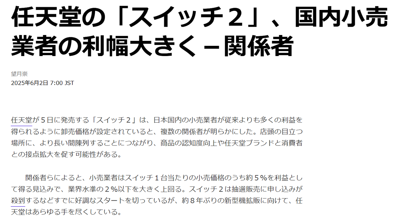 ブルームバーグ望月の記事がほぼ名指しで任天堂から否定されるシリーズだ。