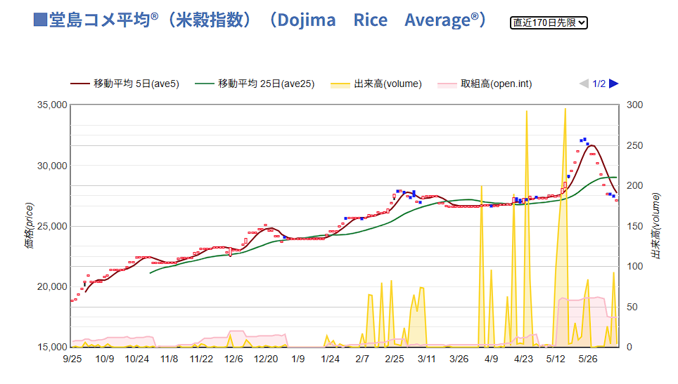 小泉進次郎氏が農水大臣に就任した5/21以降、コメの先物価格も急落しているあたり、セクシー米価対策は効いている模様 pic.twitter.com/KYQUsDlUCS