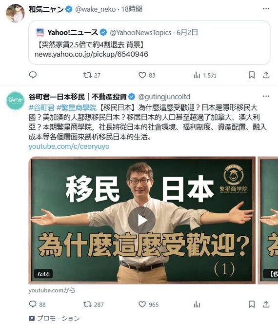 中国のワルい人々に容易に食い物にされるわが国では、SEA諸国のように手も付けられないので税収も得られず、大事になります。じっと待つのがわが国のスタイルですが、デカくなり過ぎたら手がつけらなくなります。 pic.twitter.com/8aD3hdssBU— 岡田智博 OKADA Tomohiro PhD (@OKADATOMOHIRO) June 4, 2025