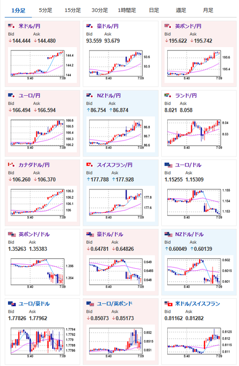 1: 以下名無しさんに代わりまして管理人がお伝えします 1848/01/24(?)00:00:00 ID:money_soku 2025年06月16日07時13分取得: やる夫今日のポイント:・リスク回避で円買いとは動かず、円売りドル買いでスタート。クロス円も全面円安・地政学リスクは増加のようで金、原油強い・日経先物は円安影響で上昇気味、米株先物は下落 管理人より:円安原因はこちらもあるかもしれません(意見が割れています) 【日経特報】日銀、2026年春から国債買い入れ減額幅圧縮へ 四半期ごと2000億円案https://t.co/JQpNyBDy4x — 日本経済新聞 電子版(日経電子版) (@nikkei) June 14, 2025 本日のスケジュール(特に重要なイベントは赤字で表示) 11:00 中)5月中国鉱工業生産(予想:前年比6.0%) 11:00 中)5月中国小売売上高(予想:前年比4.9%) 15:30 スイス)5月スイス生産者輸入価格 16:00 トルコ)4月トルコ経常収支(予想:75.0億ドルの赤字) 16:00 独)ナーゲル独連銀総裁、講演 19:30 欧)チポローネ欧州中央銀行(ECB)専務理事、講演 21:15 カナダ)5月カナダ住宅着工件数(予想:25.00万件) 21:30 米)6月米ニューヨーク連銀製造業景気指数(予想:▲6.0) 26:00 米)米財務省、20年債入札 主要7カ国(G7)首脳会議(G7サミット、カナダ・アルバータ州、17日まで) 南アフリカ(青年の日)、休場 1001: 以下名無しさんに代わりまして管理人がお伝えします 1848/01/24(?)00:00:00 ID:money_soku おはようございますお。 週明けは先週の流れを引き継いで、円売りドル買いでスタート。 今回のイランーイスラエル戦争で円はリスク回避の逃避先としては見られていない様子。 ドルはリスク回避で買われており、ドル円は窓をあけて動き始めたお。 金、原油はきっちりリスク回避先として機能しており週明け上昇して始まったお。 やる夫より:ニュース速報TwitterList、情報収集先などの記事だおやる夫の投資情報収集先あれこれ(2025年04月10日速報twitterlist更新)管理人のTwitterでも相場に関して出来る限りお答えしますとのことxmにて入金倍増キャンペーン開催とのこと 続きを読む Source: 稼げるまとめ速報 投稿ナビゲーション 上司「残業しろ。ただしタイムカードは切って置け」ワイ「タイムカード切るんすね?」上司「そうだ」 タイムカード切って帰った結果 郵便局の配達員だけど、転職かんがえた方がいいのかな…