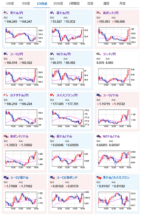 1: 以下名無しさんに代わりまして管理人がお伝えします 1848/01/24(?)00:00:00 ID:money_soku 2025年06月16日16時02分取得: 日本市場で出た重要材料: トランプ米大統領 ・米国は引き続きイスラエルを支持、決着させるべき時が来ている ・イスラエル・イラン紛争に関与する可能性がある ・イランと粘り強く交渉を続けている。間もなく平和が訪れる ・イランとイスラエルの間で平和が実現する日は近い! イスラエルーイラン情勢・アイアンドームが破られ商都テルアビブで73人死傷・今のところ戦闘が収まる様子はなし 1001: 以下名無しさんに代わりまして管理人がお伝えします 1848/01/24(?)00:00:00 ID:money_soku 欧州勢参加でドル売り、円売りの動き。 特に円は弱めで弱いドルの動きに打ち勝っている状況だお。 リスク選好の動きは続いていて株買い、金売り、原油売り、仮想通貨買いな模様。 こちらは特に日本市場から変化は出ていないお。 やる夫より:ニュース速報TwitterList、情報収集先などの記事だおやる夫の投資情報収集先あれこれ(2025年04月10日速報twitterlist更新)管理人のTwitterでも相場に関して出来る限りお答えしますとのことxmにて入金倍増キャンペーン開催とのこと 続きを読む Source: 稼げるまとめ速報 投稿ナビゲーション 【疑問】転売屋が悪い理由ってまじでなんやろうか? 【みんなの意見】休職中の転職ってどう思う??