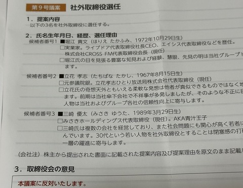 MUFG、誰やこんな株主提案出したのw pic.twitter.com/2P28ZabJ25 — エターナル総書記 (@kelog21) June 11, 2025 ※三菱UFJ、「フィナンシャル・グループ」の「・」が粋がっているようで不体裁だから消せと株主提案される(2025/05/16) 本議案に反対いたします。w — 吉熊🐻@後厄が始まる(;・∀・) (@kichiguma) June 11, 2025 株主提案がお気持ち表明なの多すぎるって — 凸ドラス (@dekodoras) June 11, 2025 時代なんだろうなあ pic.twitter.com/tlUDltBJjP — たけぞう (@noatake1127) June 13, 2025 ※第三者割当による新株式及び第17回新株予約権(固定行使価額型)の発行に関するお知らせ(2025/06/13) フォーシーズ、第三者割当増資とワラント発行、1株632円で67.9万株、ワラントは行使価額632円を182.1万株分、GFAやジェリービーンズ、ホリエモン、青汁王子らに割当、太陽光発電事業等に充当 — ありゃりゃ (@aryarya) June 13, 2025 ホリエモンとか青汁とか、なんで資本参加するのが許されるんだろう — 確認用 (@news9111) June 13, 2025 https://www.youtube.com/ 『みんな大好きホリエモンさんと青汁さんだよ!みんなも投資してね!』 — 緑青 (@RokushoRokusho) June 13, 2025 青汁王子やホリエモンに株で関わってもらって宣伝してもらう。ってことかな?しなくてもそれ自体で勝手に価値高まるか。インフルエンサー資本主義ってやつ? — りつお (@MpT74mNkYYBjC3J) June 13, 2025 ク○株祭り — スペさん (@kumakuma7) June 16, 2025 https://finance.yahoo.co.jp/ 値上がり上位 pic.twitter.com/nuYuL9tTMK — あおうさぎ🐇 (@ao_usagi) June 16, 2025 北斗の拳 全27巻 社名ロンダリング常連買ってれば儲かる相場、、、w — むつら (@mu2la) June 16, 2025 ※SDホールディングス→フェヴリナ→フェヴリナホールディングス→フォーシーズホールディングス→フォーシーズHD 悪徳宗教が名前を変えて活動継続するのを防ぐためやらかした宗教法人が名前を変えるのは大変って聞いたことあるけど、やらかした上場企業も社名変更を許さないようにすべきだよな。 — 塩漬けマン@投機ブログ (@shiozukemann) March 24, 2025 ホリエモン絡みの開示っていまんところ金になってる会社ほぼないと思うんだよなあ(今後は爆裂に成長する会社も出てくるかもしれない — まいる (@flagcrashers) January 8, 2025 中田敦彦で時事問題を学び高橋洋一で経済を学び青山繁晴で政治を学び百田尚樹で自国の歴史を学び堀江貴文で経営を学び斉藤元彦で地方自治を学び立花孝志で選挙を学び竹田恒泰で皇室を学び暇空茜で裁判を学びナザレンコ・アンドリーで愛国心を学ぶ そんな立派な普通の日本人になりたい。 — 愛国心の足りないなまけ者 にきめっ! (@tacowasa2nd) May 5, 2025 YouTubeみてるとだいたいそうなりそう — ethereal (@CatApassed) May 6, 2025 詐欺広告のせいで、広告にホリエモンの写真が載ってるだけで詐欺では?という反応が引き出されるやつ。 pic.twitter.com/WRD69lQo9U — yuna_digick (@yuna_digick) June 12, 2025 https://kabutan.jp/stock/chart?code=3726 Source: 市況かぶ全力2階建 投稿ナビゲーション ウーバー配達員「助けて!注文が全然来なくて時給300円にしかならないの。なんで皆ウーバーつかわなくなったの!?」 Apple「ハードとソフトを最適化して電池持ちを〜」Xiaomi「めんどくせぇ!デケぇの載せときゃいいんだよ!」