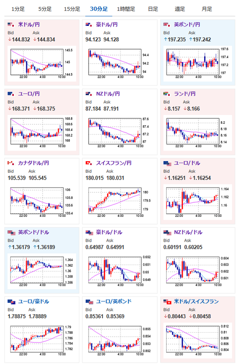 1: 以下名無しさんに代わりまして管理人がお伝えします 1848/01/24(?)00:00:00 ID:money_soku 2025年06月25日10時03分取得: やる夫今日のポイント:・パウエル氏は「インフレは予想程強くない可能性」と少し利下げ寄りの意見。しかしながら「6、7月で関税の影響がみられるだろう」としておりスタンスは据え置き維持か・ハマック氏、ウィリアムズ氏、シュミッド氏は据え置きスタンス維持・ウォラー氏は利下げスタンス維持、ボウマン氏が利下げ支持にスタンス変更・中東情勢では目立った材料なし 要人発言: パウエル議長(事前原稿) ・政策変更が経済に与える影響は依然として不確実 ・関税は物価上昇と経済に悪影響を及ぼす可能性が高い ・最終的な関税水準が影響を左右する ・米経済および労働市場は堅調な状態を維持 ・インフレ大幅に後退も、依然として目標やや上回る ・長期的なインフレ期待は2%目標と整合的 ・金利変更の検討前に待てるだけの好位置にある パウエル議長(質疑応答) ・インフレ低下、労働市場低迷は早期利下げを意味する可能性 ・アトランタ連銀のGDPモデルでは景気後退は示唆されていない ・インフレは予想ほど強くない可能性 ・FRBが関税についてコメントするのは不適切 ・FRBの任務はインフレをコントロールすること ・関税によりインフレは上昇が予測される ・金利は経済の動向次第 ・多くは年後半の利下げが適切と考えている ・状況は変化しており、われわれの考えもそれに合わせて変化 ・中東の緊張が経済に与える影響は現時点でまだ不明 ・FRBは政治的要因を考慮していない ・FRBはインフレ上昇の予測を無視できない ・労働市場に弱さは見られない ・経済が力強いため、少し休憩を取ることができる ・米財政政策はしばらく、持続不可能な道を進んでいる ・データによると、少なくとも一部の関税は消費者に影響を与える ・6、7月の数字で関税によるインフレが見られるだろう ・FRBは関税の転嫁がそれほど大きくないという見方にオープン ・関税の転嫁がそれほど大きくない場合、それは政策にとって重要 ハマック・クリーブランド連銀総裁 ・FRBは相当な期間、金利据え置きを維持する可能性が高い ・持続的な2%インフレ達成にはまだ一定の距離がある ・FRBの政策は既に中立に近いと思われる ウィリアムズNY連銀総裁 ・金利を据え置きは完全に適切との認識・データ全体の分析に細心の注意を払う必要がある シュミッド米カンザスシティー連銀総裁 ・政策については様子見の姿勢が適切 ・関税は物価を押し上げ、経済活動を抑制するだろう ・経済の強さがあるため、FRBは利下げ前に状況を見極める時間がある ・労働市場は良好な状態にある ・FRBの二つの使命(雇用の最大化と物価安定)は今後対立する可能性が高い 田村日銀審議委員・長期金利の形成は市場と市場参加者に委ねるべき・消費者物価の基調的上昇率は下方屈折の可能性小さい・予想物価上昇率さらに上振れてしまわないか注意必要・物価目標の実現時期は前倒しの可能性十分にある・市場を十分注視しつつ着実に正常化進める必要ある・物価上振れリスク高まれば不確実性高くても果断な対応あり得る・実質金利は極めて低い、適時適切に利上げが基本的な考え・政策金利、0.5%に壁があるとは感じていない 本日のスケジュール(特に重要なイベントは赤字で表示) 07:45 NZ)5月ニュージーランド(NZ)貿易収支 08:50 日)5月企業向けサービス価格指数(予想:前年比3.1%) 08:50 日)日銀金融政策決定会合における主な意見(6月16-17日分) 09:15 米)シュミッド米カンザスシティー連銀総裁(投票権あり)、講演前回発言(直前):上記の通り 10:00 日)田村直樹日銀審議委員、あいさつ前回発言(直前):上記の通り10:30 豪)5月豪消費者物価指数(CPI、予想:前年同月比2.3%)赤字の理由:豪州の金融政策に強い影響を与える経済指標のため。 14:00 日)4月景気動向指数改定値 15:45 仏)6月仏消費者信頼感指数(予想:89) 17:45 英)ロンバルデリ英中銀(BOE)副総裁、講演 20:00 米)MBA住宅ローン申請指数 23:00 米)5月米新築住宅販売件数(予想:前月比▲6.7%/69.4万件)赤字の理由:注目度が高い住宅系の経済指標。物価にも強めの影響あり。 23:00 米)パウエル米連邦準備理事会(FRB)議長、米上院銀行委員会で金融政策や経済情勢に関する半期に一度の証言赤字の理由:FRBトップの発言のため。しかしながら昨日も発言をしているため、市場への影響度は昨日よりは低め。前回発言(1日前):上記の通り 23:30 米)EIA週間在庫統計 26:00 米)米財務省、5年債入札 北大西洋条約機構(NATO)首脳会議(オランダ・ハーグ、最終日) 1001: 以下名無しさんに代わりまして管理人がお伝えします 1848/01/24(?)00:00:00 ID:money_soku おはようございますお。 NY市場ではほとんど目立った材料なし。 先ほどの田村日銀審議委員の発言は若干利上げ肯定寄りで若干円買いの動きが出たものの、全体的にはほぼ横這いの動きが続いているお。 イスラエルーイランの件も昨日停戦となった様子で、大きな衝突が起きているという情報は出ていないお。 