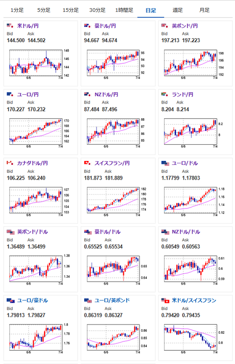 1: 以下名無しさんに代わりまして管理人がお伝えします 1848/01/24(?)00:00:00 ID:money_soku 2025年07月06日18時12分取得: 1001: 以下名無しさんに代わりまして管理人がお伝えします 1848/01/24(?)00:00:00 ID:money_soku 先週のドル円は144.7→144.5で結果としては横這いでアンケート結果は外れ。 米国の雇用系の指標やトランプ氏の関税政策懸念に揺らされる一週間となったお。 トランプ氏は関税に関する書簡を送ったとしているけれど、土日のうちに目立った材料はなし。 本当に送ったのか、仮に送ったとしていても本気なのかは来週以降に判断になりそうだお。 続きを読む Source: 稼げるまとめ速報 投稿ナビゲーション 【悲報】数学オリンピックのアメリカチーム、初めて中国を破るも何かがおかしい… 日本、増えた消費税の税収4兆円を誰のものにするか?争点に「医師の賃上げに」医療界や厚生労働族議員が気勢