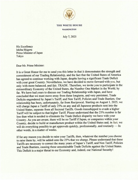 【悲報】日本、韓国と共に書簡組堕ち。相互関税率が4/2の24%より1%高い25%に引き上げられる。8/1発効 pic.twitter.com/dYCKq5V9IH — Shen (@shenmacro) July 7, 2025 うるさい韓国に揃えたのでしょうか pic.twitter.com/DP4Ke8iB9r — 世界四季報 (@4ki4) July 7, 2025 日本とマレーシアだけしれっと上げられてアメリカから舐められてる石破の無能さ — とくそん (@tokusonn) July 7, 2025 結局君たちはこの3ヶ月何してたんだい?(疑問) pic.twitter.com/85tfvWJ8To — ちゃわんご@投資の沼 (@chawan_wabita) July 7, 2025 こちらの立場だけを一方的に説明し、特別に取り計らってもらえるようになんの見返りも用意することなくお願いしてきました。 — きたさん (@kitasans524) July 7, 2025 まさか関税交渉でこんなものを見せられると思わなかったわ。 pic.twitter.com/fQO8HohVGC — (っ╹◡╹c) (@Heehoo_kun) July 7, 2025 進撃の巨人 全34巻 結局、石破はなんもできてなかったと、わかってはいたけど — Gomatarou (@tomon555555) July 7, 2025 結局、関税アップで、赤沢くんのマイルが貯まっただけでしたねw — Spectre🐙 (@s_j_bond) July 7, 2025 (;´Д`) 交渉を重ねた回数だけ関税が上がる謎交渉。 — igp (@igpman) July 7, 2025 ピストン赤沢7回アメリカ行って結局関税上げられてるって、1回も行かなくて交渉しなければ24%だったってこと?? — 投資、競馬垢@ゴッツ (@Godstoushi) July 8, 2025 トランプはたぶん減税の穴埋めに関税を使う気なので、誰がやっても日本の輸出額25%に相当する何かをアメリカに与えないと、自動車関税0は うんとは言わないと思うなあ。結局、金が欲しいんだ。トランプ。しかし、何かしらの反撃が無いと日本人としてはちょっと悔しいな。 — ○イジー (@daisycutter7) July 7, 2025 カスの中では外交がまともにやれそうが唯一の自民党の優位だったのに — (っ╹◡╹c) (@Heehoo_kun) July 7, 2025 どうせみんな8月1日までにTACOると思ってんでしょ? — ちなみだ@退場-870万人生終了 (@okanetorimodosi) July 7, 2025 関税テーマは新ステージへ。今回意外と注目されたのは「(既存関税に)上乗せされない」という点。これは明らかにTACO。一方「報復なら追加関税」と脅しも盛り込まれ、報復合戦的シナリオは排除。むしろ「不確実性の剥落」ないし「峠越え」でポジティブなのでは。市場反応も軽微。リスクはやはり参院選。 — Yuto Haga ⚽️ (@Yuto_Headline) July 7, 2025 EUは10%で逃げ切れそうなので、参院選後の交渉での下限は10%見据えていけそう、みたいなやつ — すれ☆おん✌( ‘ω’ )✌ (@acvd_sureon) July 7, 2025 関税交渉は選挙後に再開と思うが、自民大敗で石破さん、赤沢さんともいなくなるかも。 — STOCK TRAIN (@stocktrain2) July 7, 2025 ノーメンテのくせに最低限の内容で車検依頼したけど30万の車検見積もり出されて思考停止中の愛車はシルバーのワゴンRのおっさん pic.twitter.com/5toRX1P6z8 — 進撃の整備士@メカニックエスト (@shingekinomecha) July 3, 2025 石破さんてどこまでいっても評論家。だから常に発言が他人事で無責任に見える。冷や飯食らいの長い間に染み付いたスタイルから抜け出せない — スペさん (@kumakuma7) July 2, 2025 色々いいこともやった岸田も、石破を選んだというだけで功罪がマイナス1億倍くらいになった気がする — teramaru MP (@teramaru929) June 22, 2025 Source: 市況かぶ全力2階建 投稿ナビゲーション Amazon、全てを過去にする「プライムデー先行セール」を開催してしまう🤯【📦】 愛知県「フェンタニル?愛知の事業所は違法な取引無かった」