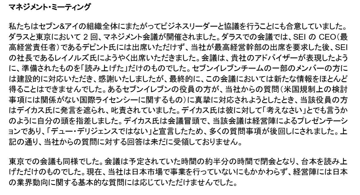 セブン&アイは何もやる気ない感じで時間稼ぎしておけばそのうち諦めるだろうという作戦だったんじゃないかな