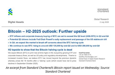 英銀スタンダードチャータードは、年内のビットコイン(BTC)について強気の見方を示しており、企業の財務戦略による購入や、上場投資信託(ETF)への資金流入の増加を根拠に挙げている。 同銀行のデジタル資産リサーチ責任者であるジェフ・ケンドリック氏は、水曜にコインテレグラフに共有されたレポートの中で、ビットコインが第3四半期末までに13万5,000ドルの新高値を記録し、年末には20万ドルを突破するとの見通しを示した。 「投資家の流入増加により、ビットコインはこれまでの“半減期から18カ月後に価格が下落する”というサイクルを脱したと考えている」とケンドリック氏は述べ、通常であれば2025年9月または10月に価格下落が起きるとされていたことを指摘した。 今回のレポートは、同銀行がビットコインに対して引き続き強気であることを裏付ける内容となっており、2028年までに1BTCあたり50万ドルに達すると予測している。 ビットコインの半減期サイクルは終焉か スタンダードチャータードのケンドリック氏は今回の新たな分析で、ビットコインの半減期サイクル──約4年ごとに発生する半減期イベントに関連した価格パターン──が持つ潜在的な影響に焦点を当てた。 ビットコインの半減期では、マイニング報酬が50%削減される。こうした半減期イベントは、歴史的にその後の価格急騰とさらなる調整局面の両方と関連づけられてきた。 2016年と2020年に行われた過去2回の半減期では、半減から約18カ月後にビットコインの価格が下落したが、2024年4月の最新の半減期については、ETFや企業による強力な買いといった新たな要因により、従来とは異なる展開になる可能性が高いと、ケンドリック氏は指摘している。 「価格は再び上昇トレンドに入ると見ており、それはETFと企業財務によるビットコイン購入の継続によって支えられる」とケンドリック氏は最新レポートに記し、これら2つの要因は過去の半減期サイクルでは存在しなかったことを強調した。 同時に、スタンダードチャータードは、第3四半期末から第4四半期初めにかけて、過去の半減期に見られた調整パターンへの懸念から、価格がやや不安定になる可能性も否定していない。 参考資料:https://jp.cointelegraph.com/news/standard-chartered-bitcoin-price-135000-q3-2025?utm_source=rss_feed&utm_medium=rss&utm_campaign=rss_partner_inbound contents ●テレグラム始めました! https://t.me/joinchat/F-7ftRCH5u_8J7k2JUM1rw ●無料でLINE@で有益情報を随時流しています。 https://lin.ee/1rhkgzo ●過去の記事 http://ripple.2chblog.jp/ ■トレードするならバイナンス! https://www.binance.com/ ■yobit net ●テレグラム始めました! https://t.me/joinchat/F-7ftRCH5u_8J7k2JUM1rw ●無料でLINE@で有益情報を随時流しています。 https://lin.ee/1rhkgzo ●過去の記事http://ripple.2chblog.jp/ ■トレードするならバイナンス!https://www.binance.com/■yobit net https://yobit.net/en/ Source: Rippleリップル)仮想通貨情報局 投稿ナビゲーション 投資歴8年目だけどビットコインを買うか悩んでる 【悲報】ビットコインを約2000万円分持ってるけど税金怖くて利確できない