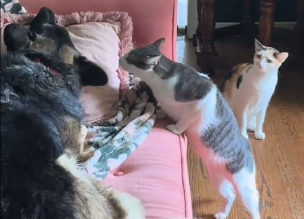 @romancedev 普段は仲良しな犬と猫たちなのに、この時ばかりは警戒心ムンムン。それもそのはず、犬は動物病院から帰ってきたばかりなのだ。 基本的に動物病院が好きなペットは少ない。この猫たちにとっても苦手な場所なのだろう。 1匹の猫はクンクンと犬の体を嗅いで、「まさかお前、病院の回し者じゃないだろうな?」と何度も確認し、もう1匹は険しい表情で犬を見つめた後、距離をとり始めたのだ。 続きを読む… ▼あわせて読みたい ・絶対に行かん!動物病院を拒み飼い主と攻防を繰り返すジャーマンシェパードの結末は? ・犬の緊張を解きほぐすため、院長とスタッフ総出で踊る動物病院がある ・岩になったり死んだふりしたり…動物病院嫌いな猫たちの戦略 ・動かざること山の如し。大嫌いな動物病院で自ら石化した犬 ・動物病院の怖さを知っている猫、仲間の猫をなんとか救い出そうと必死ファイナル(トルコ) この記事のカテゴリ:動物・鳥類 / 動画 Source: カラパイア 投稿ナビゲーション 「ハラスメント行為を見たことがありますか」大物タレントAの行為をキー局が水面下でアンケート調査…収録現場で「それは違うだろ」と怒声 【社会】手持ち型扇風機から発火か 東京のマンションで火事 6人けが
