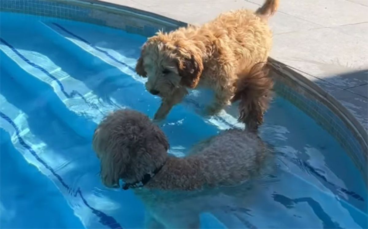 @isladoodlebear イギリス・ロンドンで暮らす女性は、ミニチュア・ゴールデンドゥードルのメス犬、アイラを飼っている。 彼女はアイラを連れて毎週末、実家のあるサリー州を訪れるのだが、実家では、同種の子犬、ルナを飼っており、2匹はまるで姉妹のように仲良しだ。 アイラはルナが生後4か月の頃から、やさしく手ほどきをしながらプールの泳ぎ方を教えてきた。 その甲斐あって、ルナはどんどん水泳が上達している。最初は水を恐がってたルナも、アイラの先導でへっちゃらに。先生と生徒のように2匹の犬がプールを泳ぐ姿は世界中に癒しの空間をもたらした。 続きを読む… ▼あわせて読みたい ・「その手を離さんかい!」赤ちゃん人形に嫉妬するゴールデンドゥードルの必死の行動 ・中に人がいるとしか… 階段に座るゴールデンドゥードルの姿にネットが驚愕 ・中に人疑惑。人間の子のように立つゴールデンドゥードルがかわいい ・掃除機の音が聞こえると尻尾ぎゅんぎゅんが止まらない!清掃員女性と唯一無二の絆を結んだ犬 ・人類最強の目覚まし時計、それは犬 この記事のカテゴリ:動物・鳥類 / 動画 Source: カラパイア 投稿ナビゲーション 祭りの露店、衛生大丈夫?毛虫や埃が普通に入ってる現実 米スタバCEOの報酬、一般社員の給与の6666倍。給与格差が曝け出される