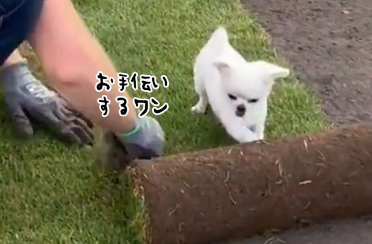 くるっとロール状に丸まった芝生を伸ばして敷いていくお仕事をしている飼い主に、自らお手伝いを買って出たのは幼そうな白い小犬。 やり方はわかっているようで前足を使って芝生を転がそうとする。でもまだ力が足りないようで十分な戦力にはならなかったようだ。 それでも最後までやり遂げようとする犬が手伝を打とするその気持ちは飼い主の心の大きな励みとなったことだろう。 続きを読む… ▼あわせて読みたい ・やさしい世界。犬のおやつを手に、散歩中の犬がやってくるのを待ち続けるおじいさん ・やさしい世界。びしょ濡れの子猫を発見した犬が、自分の家まで連れ帰る ・ボーダーコリー犬の世界一やさしい飼い主の起こし方 ・歩いた!飼い主が歩いた!普段は冷静な介助犬が、杖で歩く女性の姿を見て喜びで飛び跳ねる ・やさしい世界。お父さんが新しく家族になった子犬を近所の猫に紹介「仲良くしてあげてね」 この記事のカテゴリ:動物・鳥類 / 動画 Source: カラパイア 投稿ナビゲーション 【衝撃】佐賀・伊万里の強盗殺人事件 日本語講師の女性死亡、外国籍の20代男を逮捕へ ワイ、「無尽」とかいう山梨の文化を知り震える