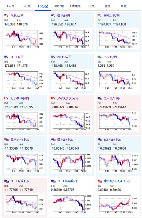 1: 以下名無しさんに代わりまして管理人がお伝えします 1848/01/24(?)00:00:00 ID:money_soku 2025年07月29日15時51分取得: 1001: 以下名無しさんに代わりまして管理人がお伝えします 1848/01/24(?)00:00:00 ID:money_soku 米国との関税合意お祝いムードで上げていた株価は、その後の懸念なども出てきてジリジリ下がり気味。 ドル円のほうは株安の影響を受けているような動きで、日本市場ではやや円高に。 ただ現在は再びドル買いで円安方向に向かってきており、方向感のない動きが続いているお。 ユーロは非常に弱い動きでどんどん売られていっているお。 続きを読む Source: 稼げるまとめ速報 投稿ナビゲーション 「東京のスーパーじゃコメ余ってるんでしょ?」進む2極化…ブランド米しか買わない人、買えない人、地方「備蓄米一度も見たことがない」 【悲報】日本、もう米を育てられる気候ではない