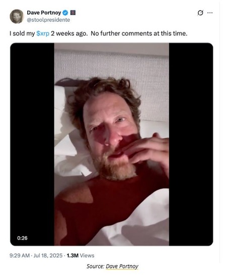 バースツール・スポーツの創業者デイヴ・ポートノイ氏が、仮想通貨XRPの急騰前に保有分を売却してしまった。同氏は、保有し続けていれば「数百万ドルを手にしていた」として、大きく後悔している。 XRPは17日、年初来高値を更新しており、ポートノイ氏はその直前に売却してしまったことを悔やんでいる。 「泣きたい気分だ。もうXRPは持っていない。自分はXRPアーミーのリーダーだったのに」と、ポートノイ氏は木曜日にXに投稿した動画の中で語った。 ポートノイ氏のコメントは、XRPが年初来高値の3.29ドルを突破し、一時3.60ドルまで上昇した直後に出された。ナンセンのデータによれば、これは過去24時間で19.61%の上昇であった。 「2.40ドルで売ってしまった」 ポートノイ氏は「XRPを2.40ドルで売ったのは、買うよう勧めてきた人物が『サークル社が競合になるかもしれない』と不安を口にして、売るよう勧めてきたから」と説明している。 実際、XRPトークンを展開するリップルは、7月2日に米国でナショナルバンクの認可申請を行っており、これはステーブルコイン発行企業のサークル社が同様の申請を行ったわずか2日後のことだった。 ポートノイ氏はカンファレンス「コンセンサス2025」において、XRPに対して「特別な信念があったわけではない」と語り、FOMO(取り残されることへの恐れ)から購入しただけだったと認めていた。「次のビットコインになるかもしれないと思った」と述べた。 XRP高騰、ショート勢に大打撃 コイングラスのデータによると、XRPの急騰を受け、過去24時間で約6816万ドル相当のXRPショートポジションが清算された。 この上昇は、仮想通貨市場全体の上昇局面の一部でもある。7月9日にビットコインが11万2000ドルを突破して以降、市場は全体的に強気の流れとなっている。 しかし、17日は特に象徴的な1日となった。米議会下院で複数の仮想通貨関連法案が相次いで可決されたためだ。可決されたのは、仮想通貨の市場構造確立を目指す「デジタル資産市場の明確化(CLARITY)法案」、ステーブルコインの規制枠組みを整備する「米国におけるステーブルコインのイノベーション促進(GENIUS)法案」、「中央銀行デジタル通貨(CBDC)の監視国家化を防ぐ法案」の3つの法案だ。 これらの法案の可決は、仮想通貨業界にとって前向きな規制の動きとして受け止められ、市場全体の追い風となっている。 参考資料:https://jp.cointelegraph.com/news/dave-portnoy-xrp-holdings-sold-price-surge-crypto-rally?utm_source=rss_feed&utm_medium=rss&utm_campaign=rss_partner_inbound contents ●テレグラム始めました! https://t.me/joinchat/F-7ftRCH5u_8J7k2JUM1rw ●無料でLINE@で有益情報を随時流しています。 https://lin.ee/1rhkgzo ●過去の記事 http://ripple.2chblog.jp/ ■トレードするならバイナンス! https://www.binance.com/ ■yobit net https://yobit.net/en/ ●テレグラム始めました! https://t.me/joinchat/F-7ftRCH5u_8J7k2JUM1rw ●無料でLINE@で有益情報を随時流しています。 https://lin.ee/1rhkgzo ●過去の記事http://ripple.2chblog.jp/ ■トレードするならバイナンス!https://www.binance.com/■yobit nethttps://yobit.net/en/ Source: Rippleリップル)仮想通貨情報局 投稿ナビゲーション XRP、20%急騰し過去最高値を更新──長期的には●●ドルが目標として浮上 イーサリアム、3800ドル突破──●●の大規模購入と機関投資家の参入で上昇