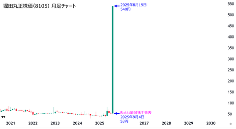 千年の杜が死んだ… ソチの人工島は作られず、メキシコ商務省のスーパーソルガムは存在せず、メキシコイダルゴ州のコロナ治療薬は虚偽で、インドのコンビニは社長暗殺で閉店した…残る海外謎カタリストは宮越の深圳のみ… — 丸順みかん🍊 (@bleeAFDYMCcA0WE) August 18, 2025 ※29年間で社名ロンダリング6回の創建エース、ここに来て優しい東証の怒りが収まらず切り捨てるように上場廃止へ(2025/08/18) 詐欺だろうが、犯罪だろうが、一旦上場さえしてしまえば証券会社も上場会社もみんな笑顔で大儲けできる、ステキな東証カジノ。 — もふ鈴 (@rinzombiemofu) November 26, 2020 昨今のクソ株候補はみんなビットコイン買うだけ業になってしまって趣がない — peko (@peko409) August 18, 2025 ※主な「ビットコイン始めました」上場企業 ・株券印刷によるビットコイン1点賭けに勝利し瞬間時価総額1兆円を達成したメタプラネット ・電力小売屋のリミックスポイント ・中華系株券印刷業のビート・ホールディングス・リミテッド(旧・新華ファイナンス)・大型上場ゴール企業のgumi・解体の窓口のバリュークリエーション・青汁王子が広告塔(なぜか本人は消極的)のエス・サイエンス(旧・志村化工)・ゲーム屋のenish(エニッシュ)・服屋のマックハウス・自動車部品屋のイクヨ・オンラインクレーンゲームが主力のサイバーステップ・求人広告のイオレ・AIフュージョンキャピタルグループ(旧フューチャーベンチャーキャピタル)・単なる安い服屋で事業再生中のANAP・無料ゲーム屋の東京通信グループ・上場3年で子会社で粉飾決算のアジャイルメディア・ネットワーク ・社名ロンダリング4回のフォーシーズHD ・ネイル屋のコンヴァノ ・社名ロンダリング4回のクオンタムソリューションズ ・呉服問屋の堀田丸正(米Bakktの裏口上場) ・九州の注文住宅メーカーLib Work(リブワーク) みんなで大家さんで増やした種銭を見事にメタプラネットで10倍にした闇の天才みたいなんもどっかにはおるんやろうなあw — 全宅ツイのグル (@emoyino) August 15, 2025 160年の歴史を持つ日本の呉服問屋「堀田丸正」が暗号資産企業に進化し、10日で株価10倍を達成しました🚀 10営業日の爆速テンバガー🚅🍔 堀田丸正の筆頭株主はRIZAPグループから米暗号資産企業Bakktへ移り、社名は「https://t.co/IPBRvn8nDK(ビットコイン・ジェーピー)」に変更される予定です。 pic.twitter.com/8qVfRRofCH — アンゴロウ@暗号資産 (@angorou7) August 19, 2025 8月4日のBAKKTによる買収発表後の6日の寄りに突っ込むだけで短期5倍超になれたというタラレバ pic.twitter.com/QNdbCBUjIM — gorin (@gorin_strategy) August 19, 2025 https://kabutan.jp/stock/chart?code=8105 ビットコインJPってどう略せばいいんだ堀田コインとかでいいか — にゃんたまω (@nyantama2323) August 7, 2025 https://investors.bakkt.com/ 堀田丸正然り、今の相場って 「低時価総額のハコ+低い倫理観」の合わせ技さえあればとんでもねぇ錬金術が出来ちゃう… — hiro_tyun (@hiro_tyun) August 8, 2025 海外企業が日本企業を箱にして、日本人の購買力でビットコインを買い集めるの、結構まずくない? — moyashamo/もやしししゃも (@sishamo_moyashi) August 6, 2025 一時的なんだろうけど堀田丸正がBakktの時価総額超えててだいぶ面白い — ヨーロピアン (@sen_axis) August 12, 2025 https://stockcharts.com/h-sc/ui?s=BKKT※米Bakktの時価総額 1億2023万ドル(約177億円)(NY時間2025年8月19日12時半時点)※堀田丸正の時価総額 322億円(日本時間2025年8月19日時点) 市場から金をかき集めてビットコイン買う自転車をこいでるだけなのに、その金が集まらなかったら自転車がどうなるかぐらいわかりそうなものだけど — スペさん (@kumakuma7) August 15, 2025 かつて日本人の投資対象としては不動産、株、債券、ゴルフ会員権が一般的だったが、ゴルフ会員権は90年代後半に凄まじい暴落を経て市場そのものがほぼ消失と言って差し支えない状態となって現在に至ってる。仮に向こう10年のスパンでそのようになる金融商品があるとすれば仮想通貨だと思ってる。 — ボヴ (@cornwallcapital) August 11, 2025 Source: 市況かぶ全力2階建 投稿ナビゲーション 国内で「ここはガチで行っとけ」って場所 ファミリーマート、「QUOカード」の販売・利用を終了へ 使えるのは年内まで