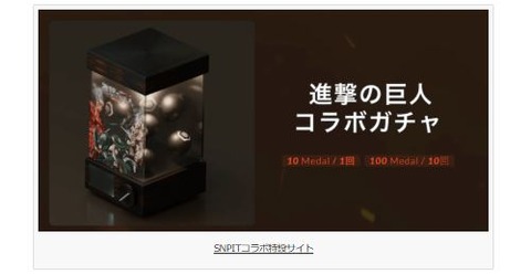 「SNPIT(スナップイット)」が、人気アニメ「進撃の巨人」とのコラボレーションを公開した。 SNPITは、カメラNFT(非代替性トークン)を活用して写真を撮影し、仮想通貨を稼ぐことのできる「Snap to Earn(撮影して稼ぐ)」要素を持つゲーム。写真の撮影やバトルへの参加で、ポイントを獲得し、集めたポイントは世界中のデジタルギフトやビットコインに交換可能だ。 今回のコラボでは、期間限定のコラボガチャが開催され、進撃の巨人の限定スキンを獲得できるほか、10日間連続のログインで特別感のある「超大型巨人スキン」のカメラNFTを手に入れることができる。 SNPITは、プレイヤーが写真を撮影し、それをゲーム内で活用することでポイントや報酬を獲得、その成果に応じて暗号資産を獲得できるのが特徴だ。また、使用するカメラやストラップのスキンによってステータス効果を獲得できる。 今回のコラボガチャでも、登場キャラクターをモチーフにしたスキンやアイテムが用意されており、各装備には固有の効果が付与されている。これにより、ゲーム内での報酬にも影響を与える仕様となっている。 参考資料:https://coinpost.jp/?p=641799 contents ●テレグラム始めました! https://t.me/joinchat/F-7ftRCH5u_8J7k2JUM1rw ●無料でLINE@で有益情報を随時流しています。 https://lin.ee/1rhkgzo ●過去の記事 http://ripple.2chblog.jp/ ■トレードするならバイナンス! https://www.binance.com/ ■yobit net https://yobit.net/en/ ●テレグラム始めました! https://t.me/joinchat/F-7ftRCH5u_8J7k2JUM1rw ●無料でLINE@で有益情報を随時流しています。 https://lin.ee/1rhkgzo ●過去の記事http://ripple.2chblog.jp/ ■トレードするならバイナンス!https://www.binance.com/■yobit nethttps://yobit.net/en/ Source: Rippleリップル)仮想通貨情報局 投稿ナビゲーション 【悲報】ビットコインが1,500万円台まで下落、仮想通貨全面安に・・・ イーサリアムの●●者、悪意あるAI拡張機能でウォレットを流出
