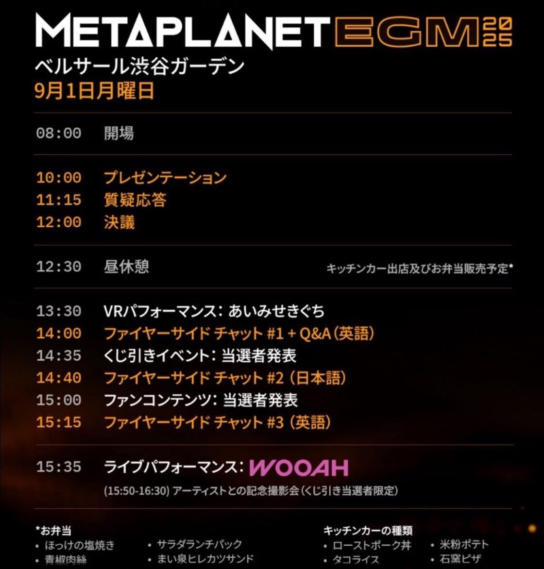 日本企業メタプラネットのビットコイン保有枚数が、世界上場企業6位に浮上しました🌏🚀 1009BTCを追加購入し、ついに2万枚到達です⛰️#メタプラネット pic.twitter.com/dMUjEzeCeg — アンゴロウ@暗号資産 (@angorou7) September 1, 2025 1位の桁が違うw — oz (@none_ozzy_moon) September 1, 2025 確信犯でクソ株やっててすごいよね — 銀髪推進派 (@alpaka) August 27, 2025 ビットコイン買うだけ事業と株券印刷業の2大事業 — 居残り佐平次🍥 (@inokori_3814) August 27, 2025 ルール内だからなにやってもいいだろてやつがおると、ルールを厳しくするしかなくなるやつだよな 東証にどこまで対応する気があるかは知らんけど — 確認用 (@news9111) August 27, 2025 メタプラネットの株主総会、他人事だから面白いけどホルダーだったらこんなことに無駄金使うなと言いたくなるなw — IJO (@raiku132) September 1, 2025 ・K-POPガールズグループ「WOOAH」のライブパフォーマンス ・せきぐちあいみのVRアートパフォーマンス ・トランプ大統領の息子エリック・トランプ召喚 自分の知ってるスケジュールと全然違う。暑すぎてたまたま会場にいたから良かったけど。 pic.twitter.com/EKOsbqnBbs — 行けたら行くわ🪬 (@jujokomeya) September 1, 2025 いくら払えばトランプの息子呼べるんだろ。 — ぱりてきさす (@paristexas2009) August 22, 2025 メタプラネット株主総会ざっくりまとめ•今年の目標は3万ビットコインの取得•来年は10万ビットコインが目標•2027年には総供給量の1%保持•優先株の配当の原資はプットオプション取引(優先株の発行株式数を絞ることで調整)•計画は数年単位で進める(ひとまず2027年)•エリック「時間かかるよ」 — 権田 (@pichannounpis) September 1, 2025 【決議された3つの議案について】1.発行可能株式総数の増加16.1億株 → 27.23億株へ大幅拡大。ビットコイン買い増しの資金調達のため2.株主総会のオンライン化定款を改正し、今後はオンライン開催可能に3.永久優先株式の発行「A種」「B種」の2種類を定款に追加。資金調達の柔軟性を高める狙い。 — PROVOYAGE (@pro_dxi) September 1, 2025 これら3議案はすべて可決されました。また会場の雰囲気と印象ですが、会場にはキッチンカーが並び(飲食は有料)、さらにアイドルのライブや3Dアーティストのパフォーマンスも行われるなど、株主総会としては異例の演出がありました。 pic.twitter.com/suzm5t6ARw — PROVOYAGE (@pro_dxi) September 1, 2025 すごいと思う反面、株主層の拡大により知識の浅い株主が増えたことを意識し、退屈させない工夫とも感じられました。実際、株主数は昨年比で10倍に増えており、「投資の知識を持たない株主」の割合が大きくなっているように見受けられます。 — PROVOYAGE (@pro_dxi) September 1, 2025 株主にとって本当に重要なのは催し物ではなく、企業価値を高め株価を上げることです。その点では、派手な演出が“誤魔化し”のようにも思え、素直に楽しめませんでした。 — PROVOYAGE (@pro_dxi) September 1, 2025 トランプの御曹司、おやじに似て饒舌だった。 — キラク (@whitekirak1) September 1, 2025 メタプラネットの臨時株主総会グッズが早速メルカリにw pic.twitter.com/7OZsFSjPj8 — 増井 (@miraclemasui) September 1, 2025 https://kabutan.jp/stock/chart?code=3350 Source: 市況かぶ全力2階建 投稿ナビゲーション ミニバンのトヨタノア、2021年式、3.6万キロ、総支払額274万円ってあり? 【画像】民主党政権時代の物価wwwwwwwwwwww