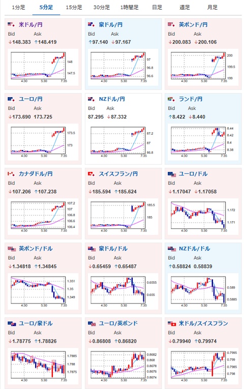 1: 以下名無しさんに代わりまして管理人がお伝えします 1848/01/24(?)00:00:00 ID:money_soku 2025年09月08日07時42分取得: やる夫今日のポイント:・石破氏辞任報道で緩和期待が一気に上昇・ドル円は148円台半ばと1円近く円安へ・日銀は利上げできず、米国はインフレ懸念で利下げが厳しい(一度はやると思う)という見込みは維持・長期的にまだまだ円安が続くと予想・米利下げ期待で今週は金も強そう 本日のスケジュール(特に重要なイベントは赤字で表示): 08:50 日)4-6月期実質国内総生産(GDP)改定値(予想:前期比0.3%/前期比年率1.0%) 08:50 日) 7月国際収支速報 経常収支(予想:季節調整前3兆3660億円の黒字/季節調整済2兆5805億円の黒字) 貿易収支(予想:580億円の黒字) 14:00 日)8月景気ウオッチャー調査(予想:現状判断指数45.6/先行き判断指数47.5) 未定 中)8月中国貿易収支(予想:993.0億ドルの黒字) 15:00 独)7月独鉱工業生産(予想:前月比1.0%/前年同月比▲0.3%) 15:00 独)7月独貿易収支(予想:155億ユーロの黒字) 25:30 仏)ビルロワドガロー仏中銀総裁、講演 29:00 米)7月米消費者信用残高(予想:100.0億ドル) 1001: 以下名無しさんに代わりまして管理人がお伝えします 1848/01/24(?)00:00:00 ID:money_soku おはようございますお! 特にいう事はなく、日曜日のアンケート記事に書いた通り。 石破氏辞任で圧倒的な円安の動きだお。 米国の利下げは懸念材料ではあるけれど、現在のインフレを見ている限り大幅利下げは厳しいのでは。 今週も僕は円安かつ金高予想だお。 > 石破氏辞任報道が米利下げ報道の圧力に打ち勝つと予想しているので、来週も円安予想だお!関連記事:【相場】石破氏、辞任を正式表明 来週のドル円はどうなる? document.getElementById(‘kznott2frame’).onload = function() { try { const contentHeight = this.contentWindow.document.body.scrollHeight; this.height = contentHeight; } catch (e) { console.error(“error”); } }; 続きを読む Source: 稼げるまとめ速報 投稿ナビゲーション アメリカ「助けて!何故か観光客が減って2兆円の損害が出たの!」 会社今月で退職するわWWWWWWWWWWWWWWWW